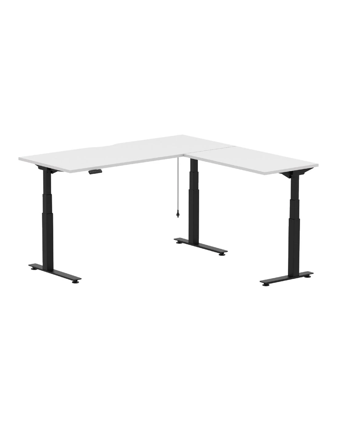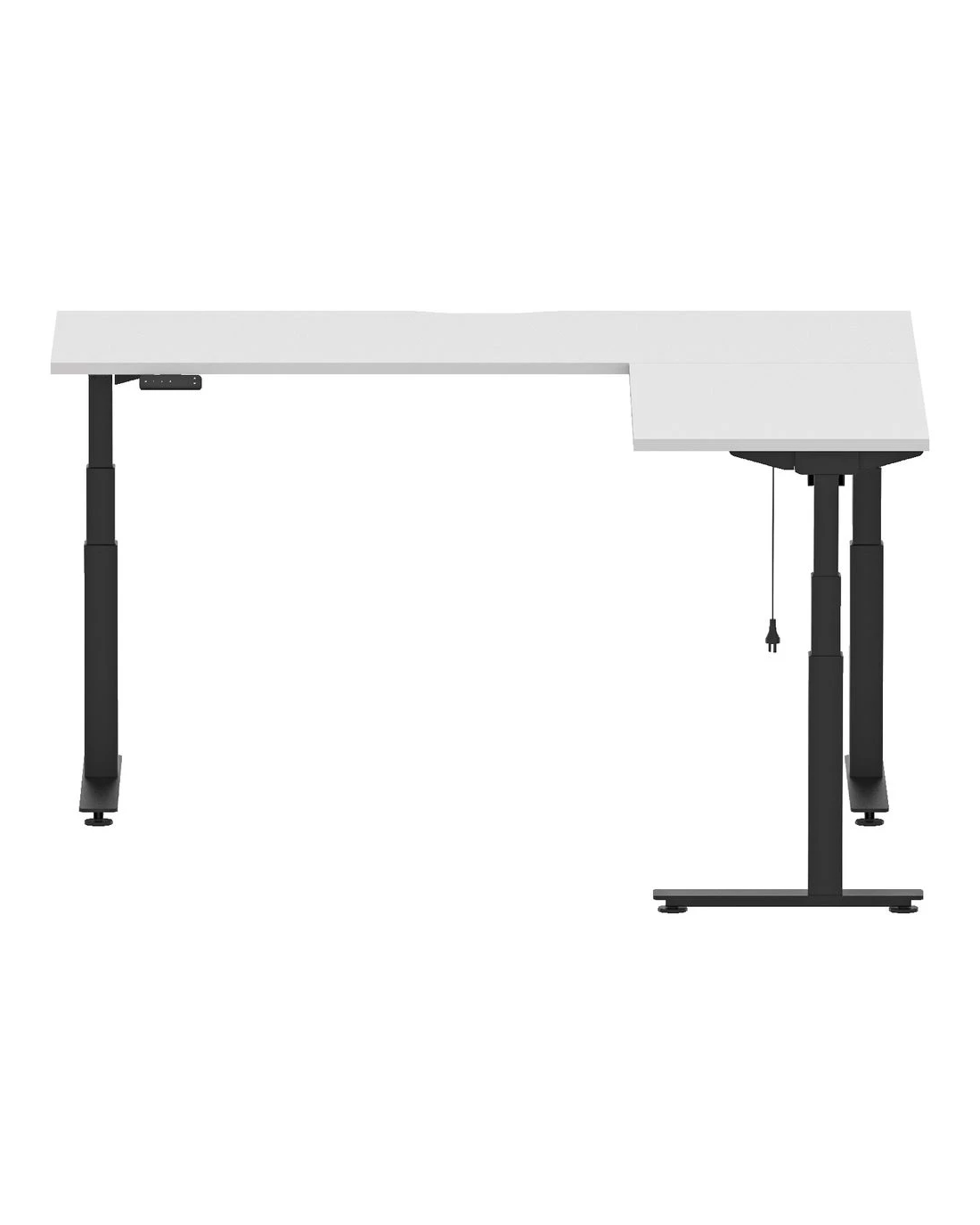 - This corner workstation features dual motors in the desk and a third motor in the return desk section working simultaneously on each frame leg.