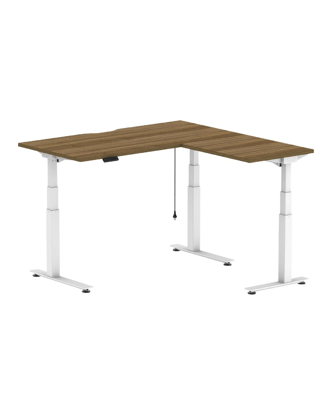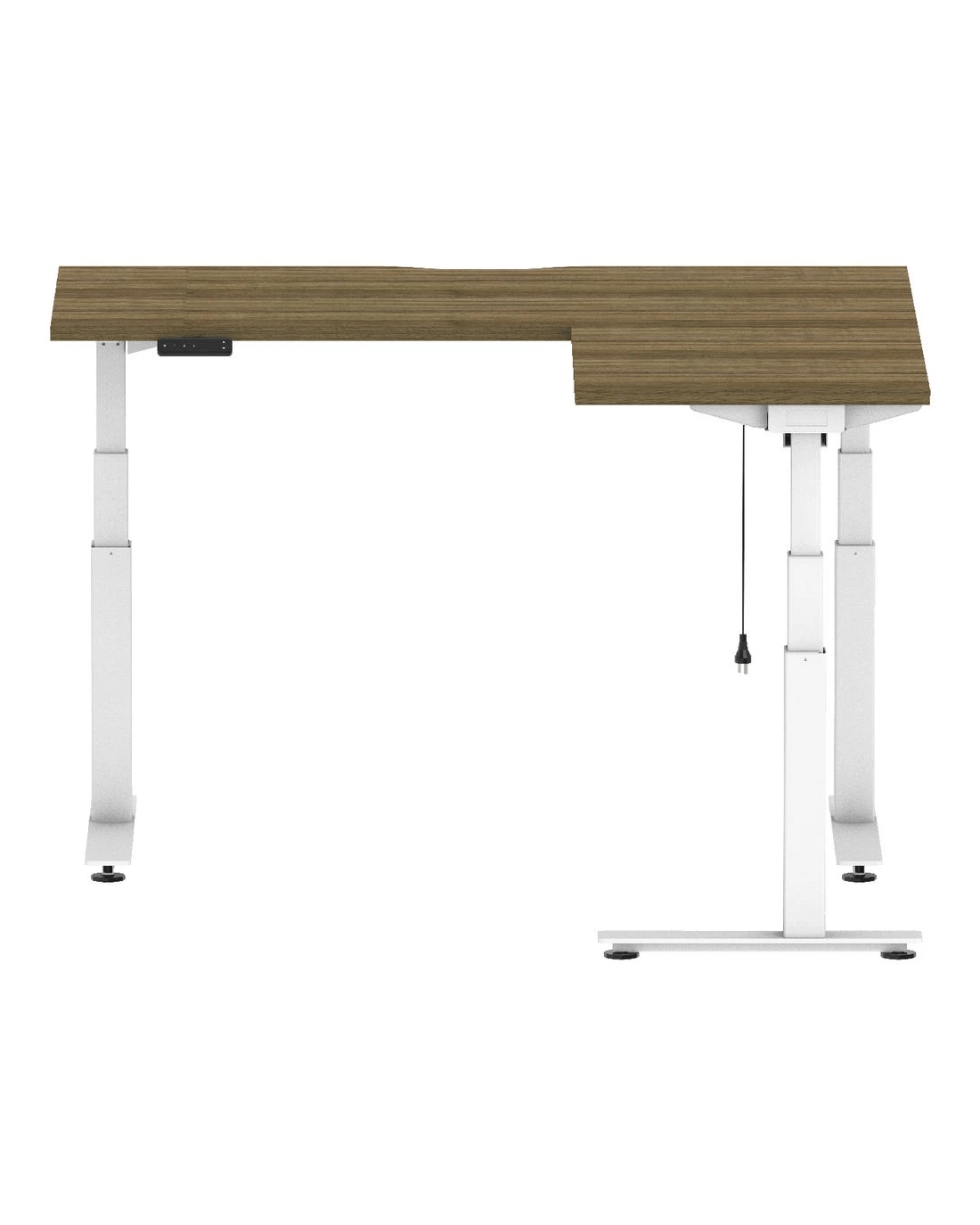 • This corner workstation features dual motors in the desk and a third motor in the return desk section working simultaneously on each frame leg.