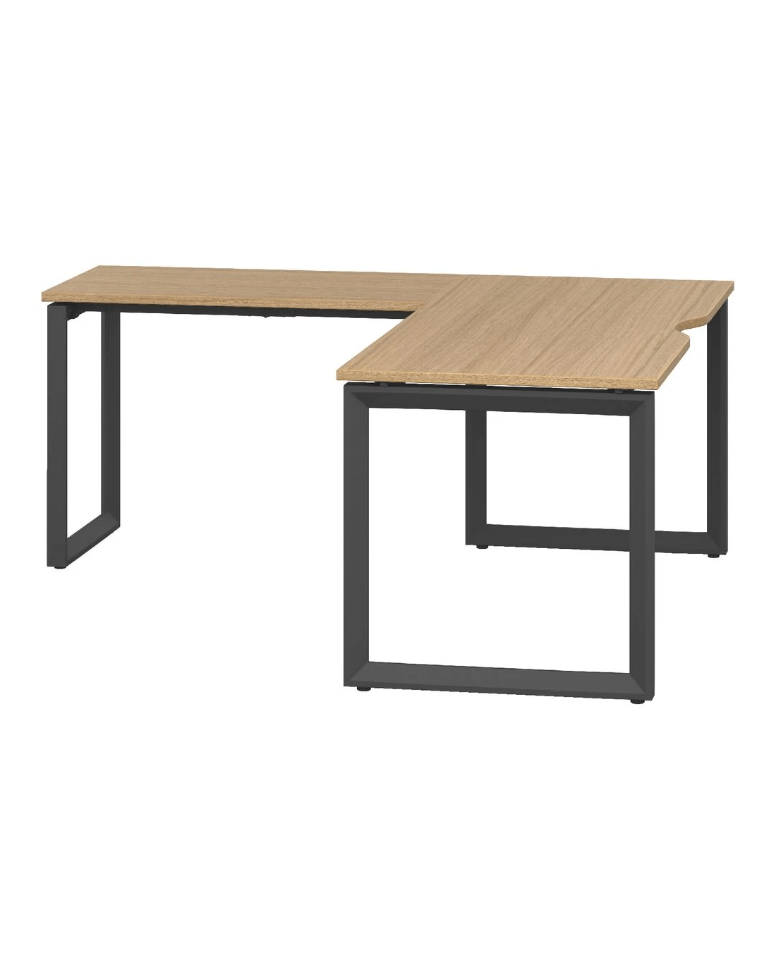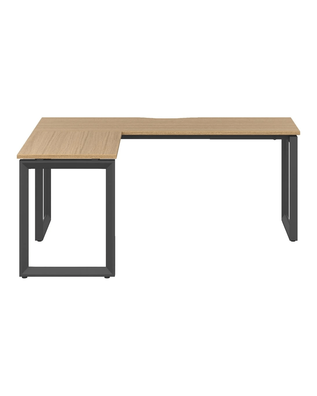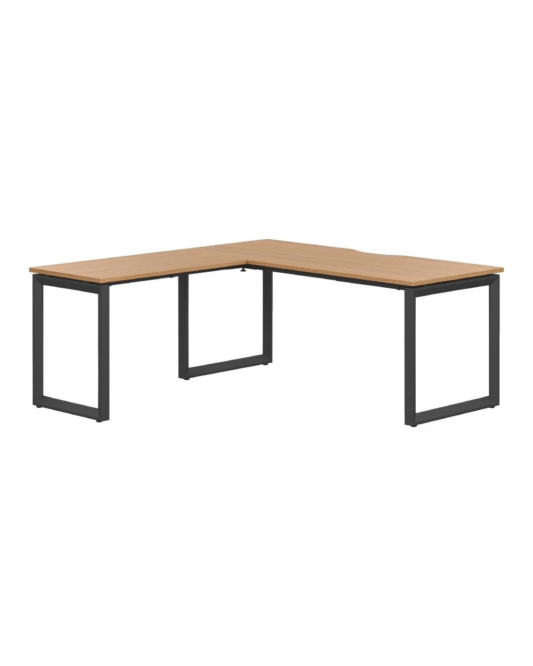 - This workstation has a black frame with an oak coloured top and edging.