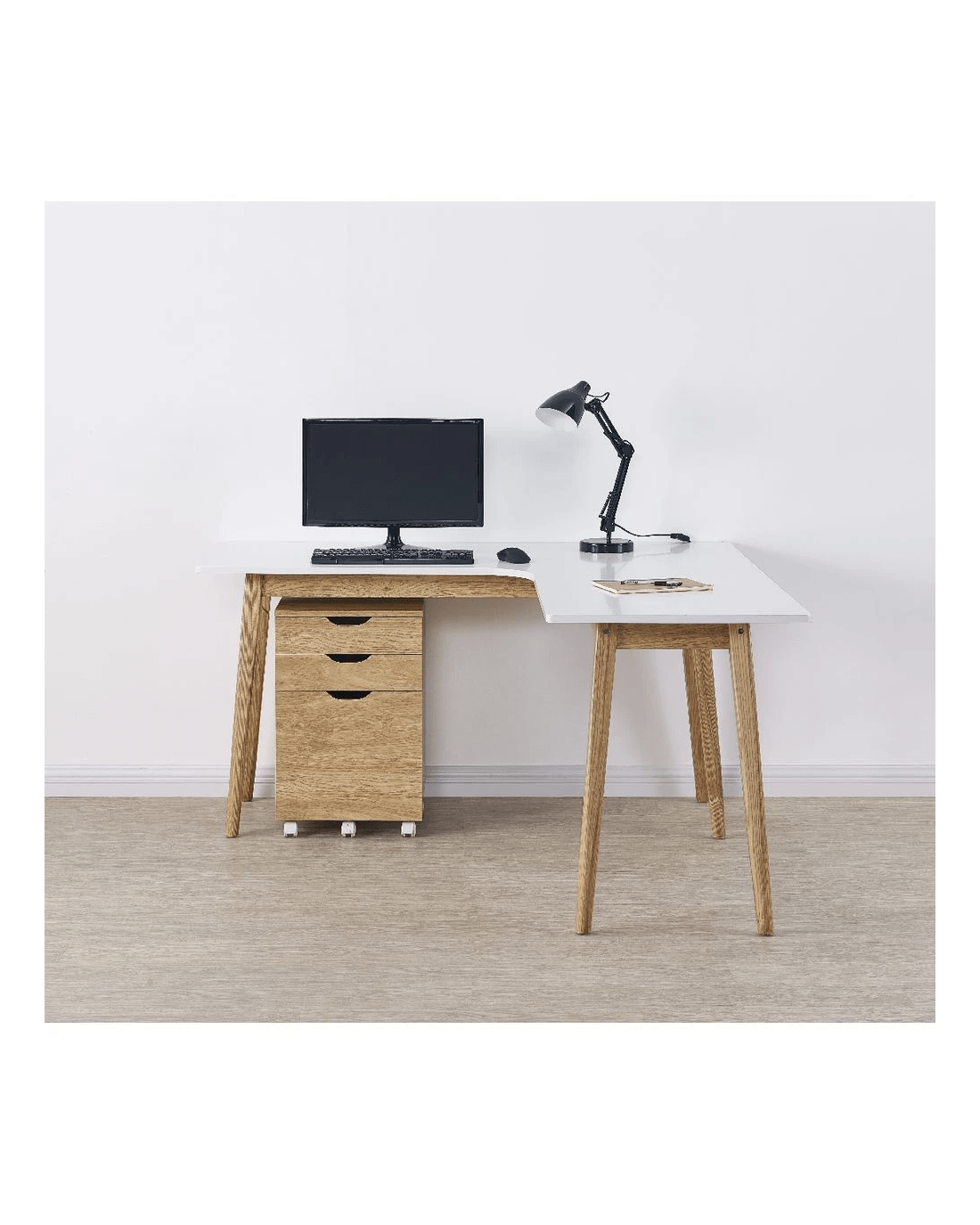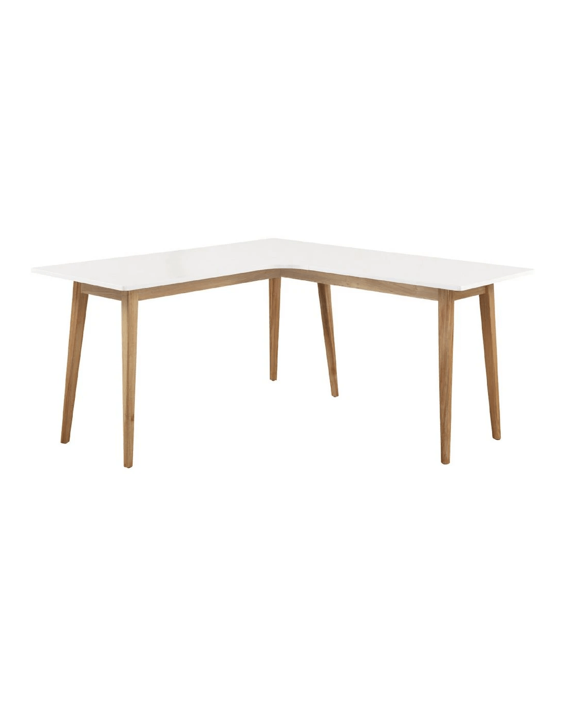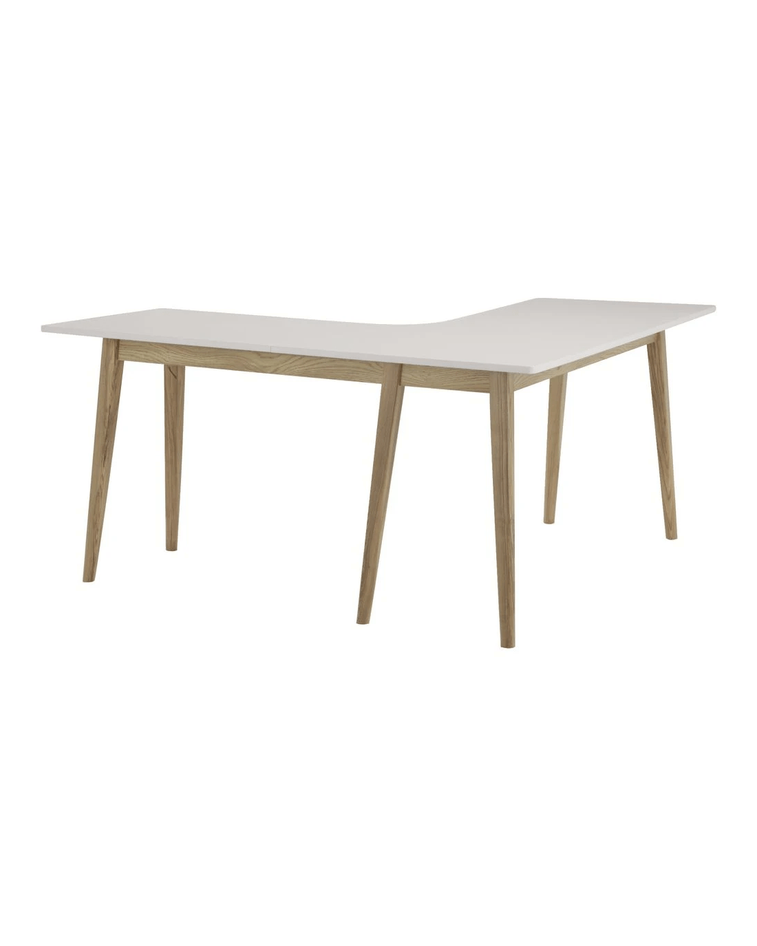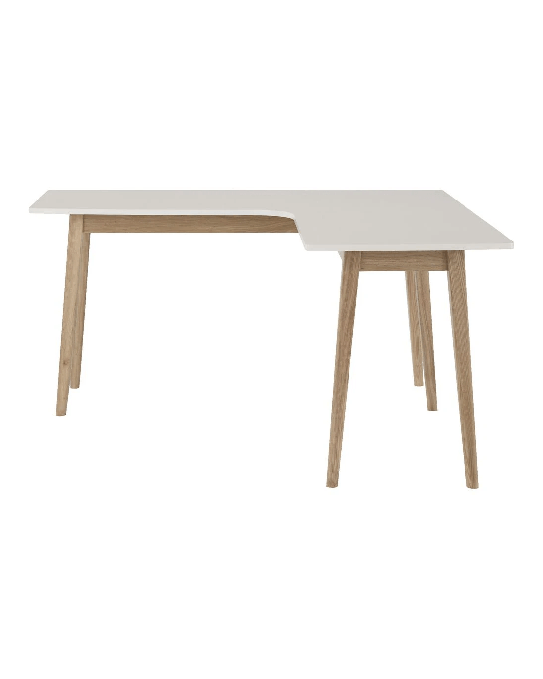 The Copenhagen Corner Workstation has been influenced by Scandinavian design and has a large L-shaped table top giving you ample room to spread out while you work. It features tapered solid ash timber legs and a neutral white premium finish to complement modern minimalist styling.