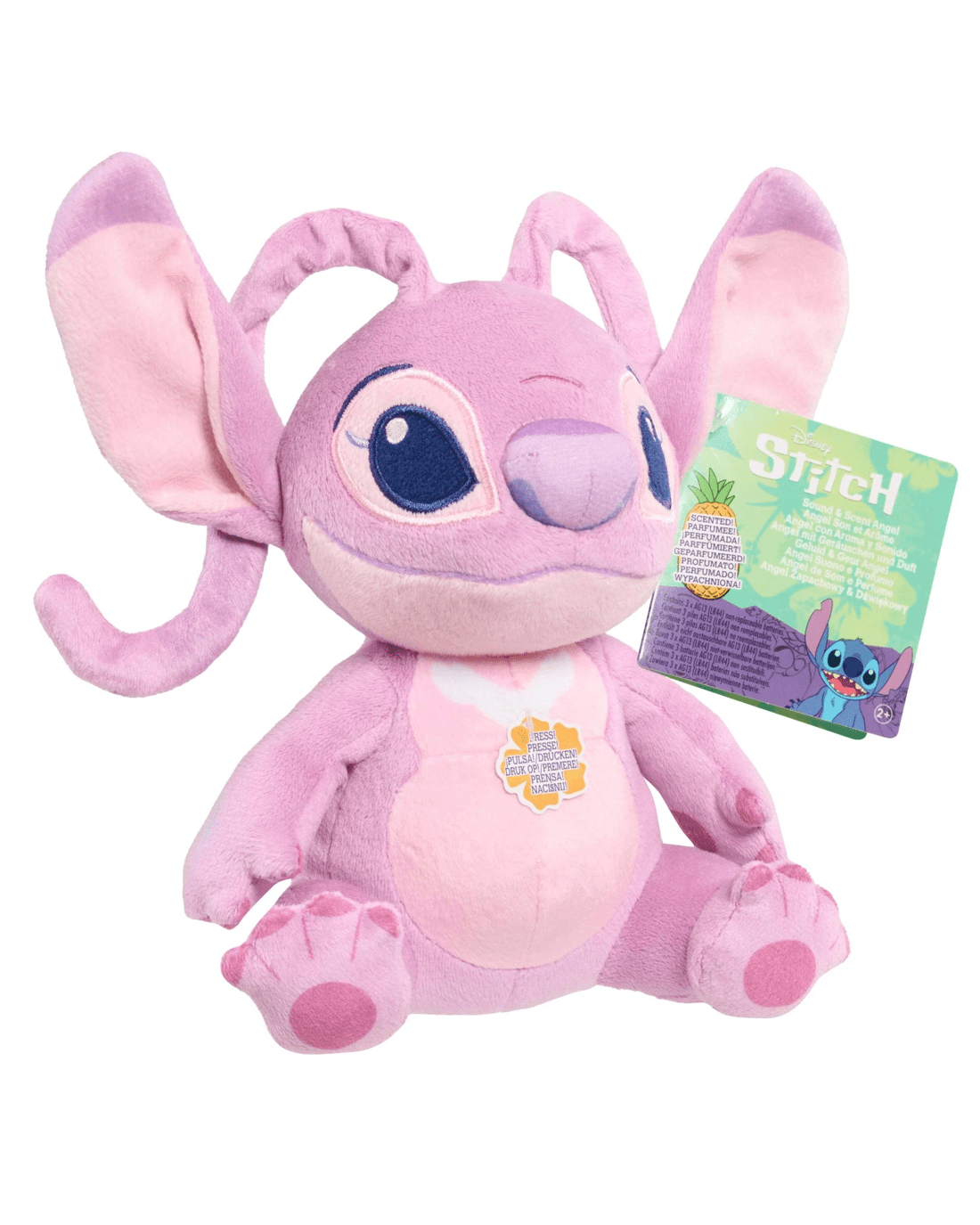 Welcome a touch of Disney fun into your world with the Stitch 6-inch Sound and Scent Small Plush. Made from soft, velvety material, this adorable plush is a delight to squeeze, while its sweet pineapple fragrance adds a playful twist to every cuddle. With a gentle press on Stitch’s belly, you’ll hear one of his endearing alien phrases, bringing even more laughter to playtime. Whether it’s a cosy night in, a long car ride, or an imaginative afternoon, Stitch will be your trusted companion, ready for adventure and giggles. Treat yourself or surprise a friend with this lovable plush and invite a dose of Disney joy into your day.