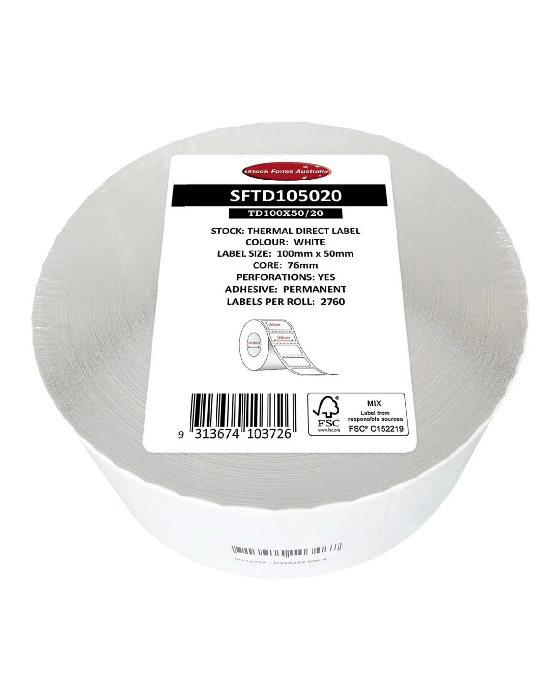 Stock Form Direct Thermal Labels 100 x 50mm 2760 Pack White