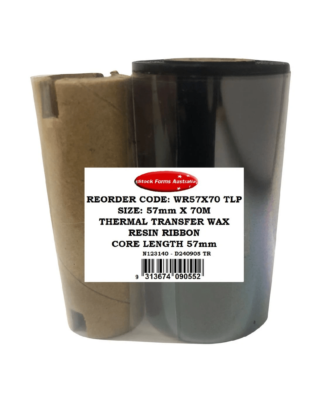 This Black Wax Ribbon from Stock Forms is for use in 2" Desktop Thermal Transfer printers such as the Zebra TLP2824. It measures 57mm x 70m and is made specifically for thermal transfer printing.
