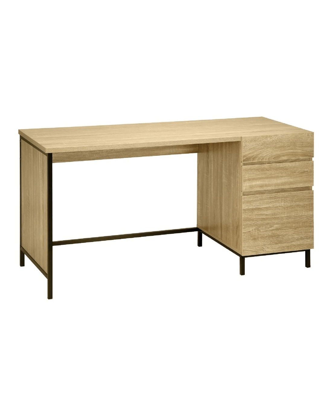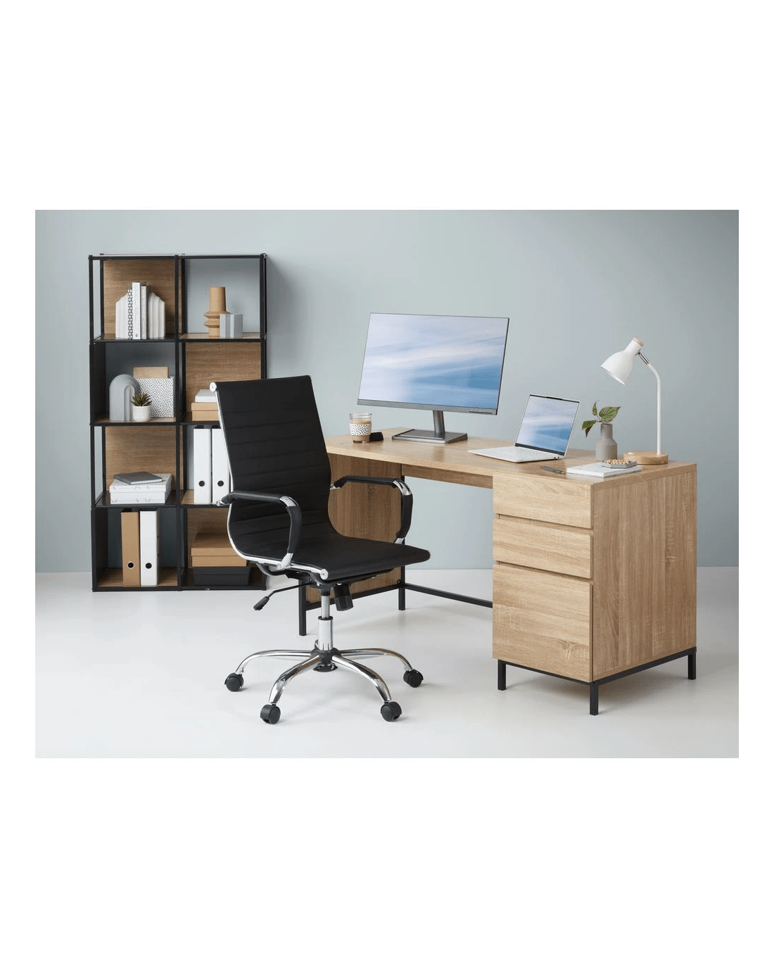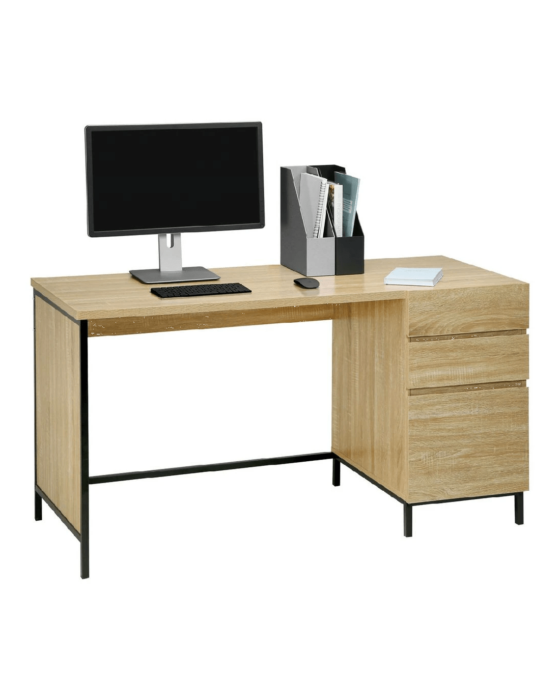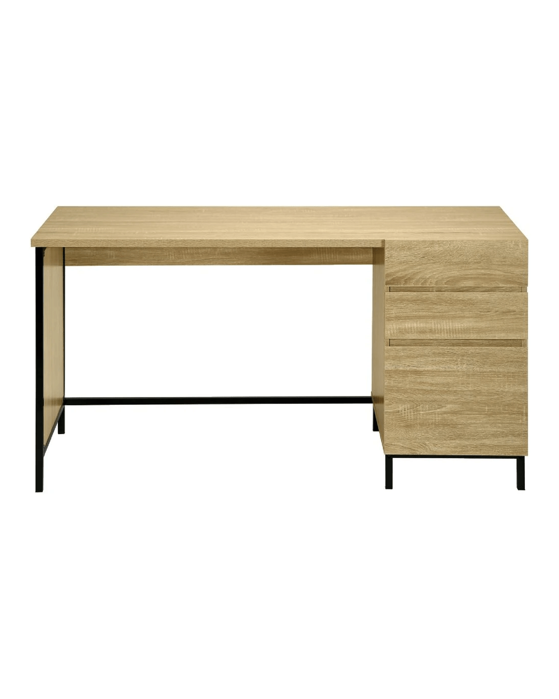 Sold by OfficeworksStockholm 3 Drawer 1400mm Desk Oak Black Desks, Tables and Workstations