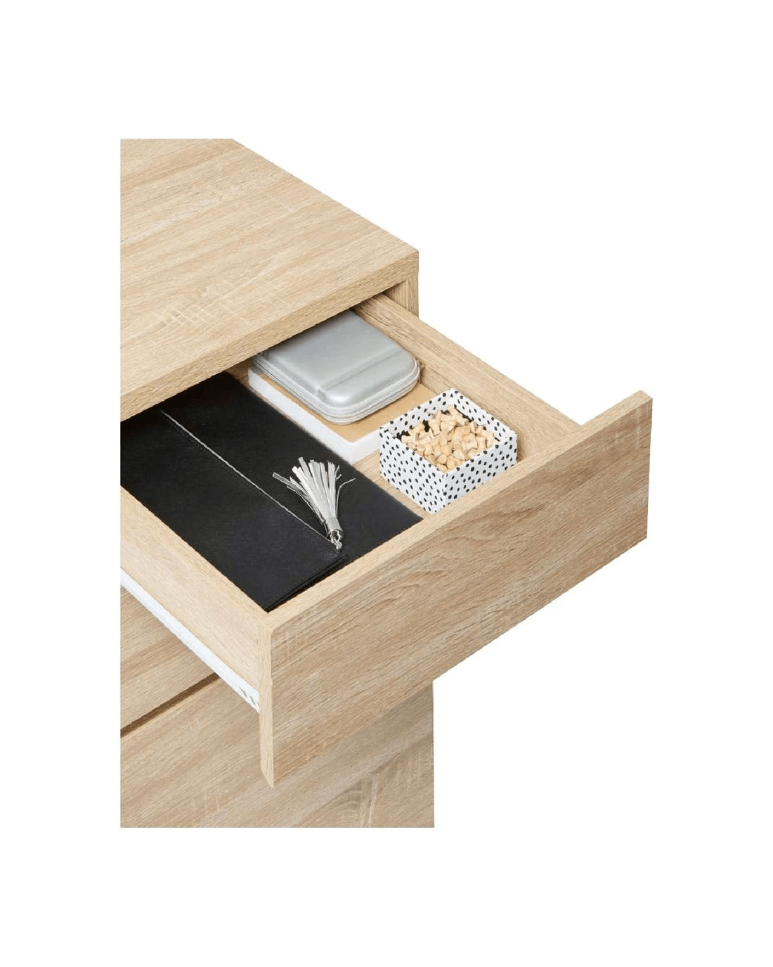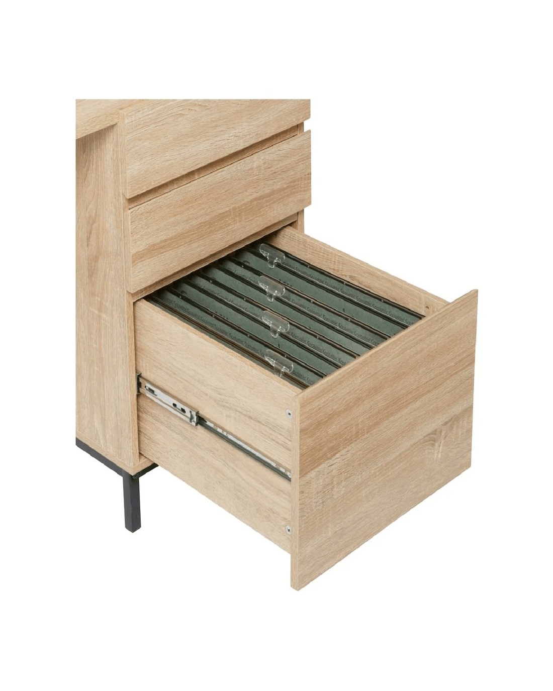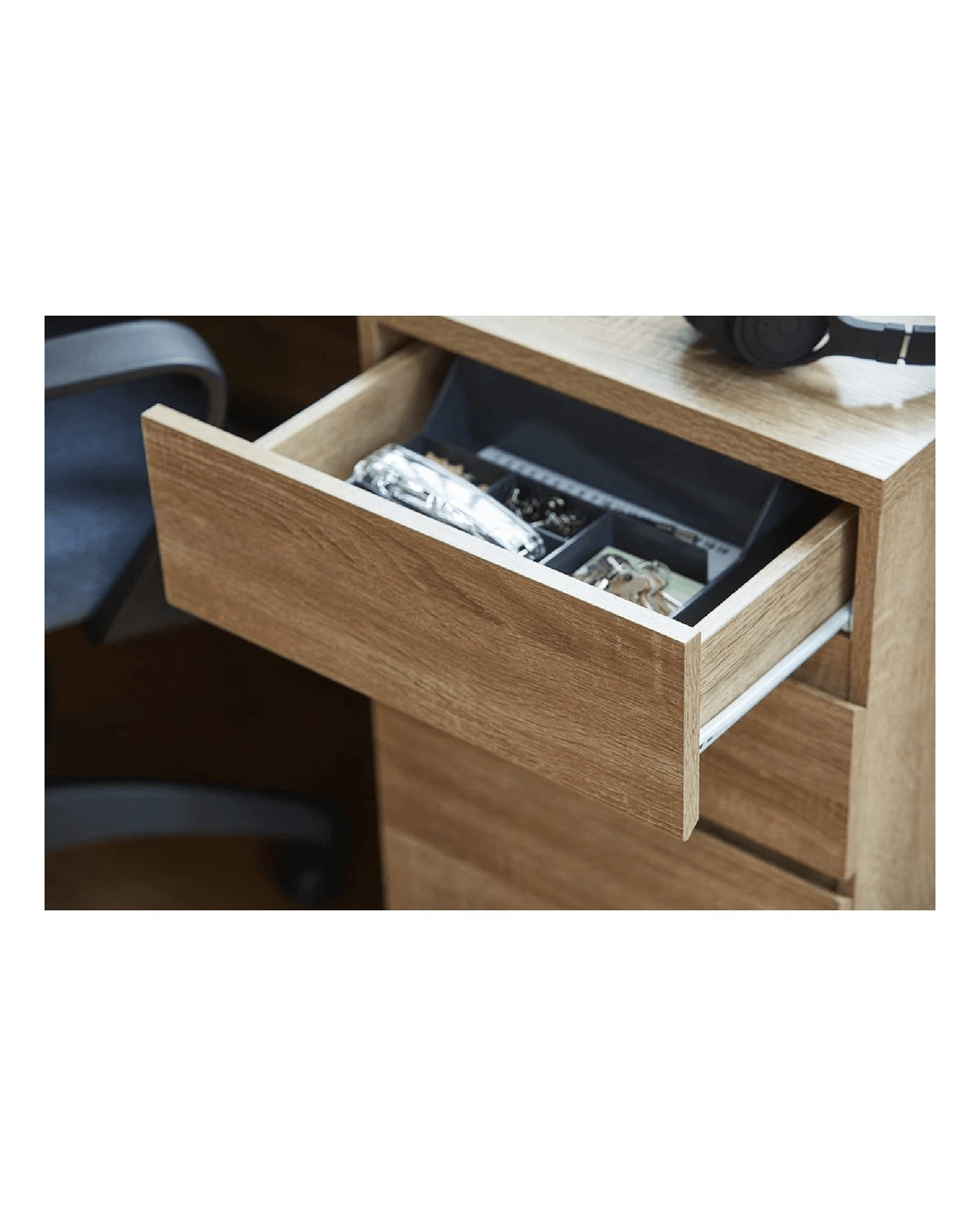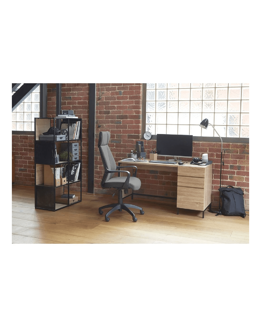 Sold by OfficeworksStockholm 3 Drawer 1400mm Desk Oak Black Desks, Tables and Workstations