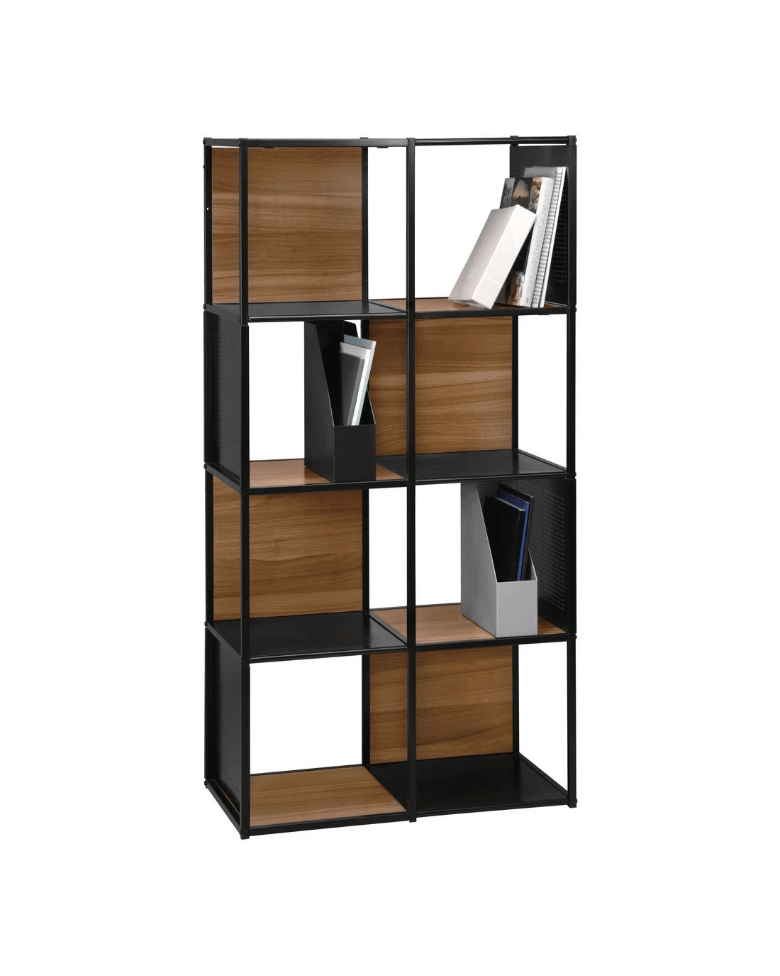Stockholm 8 Cube Bookcase Walnut and Black Shelves Home Office Storage
