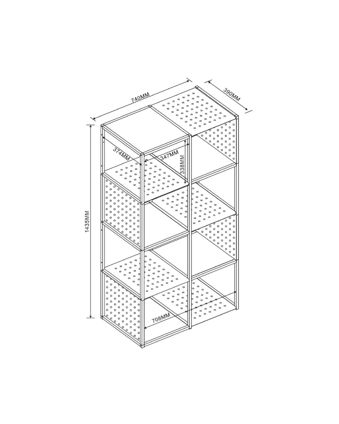 • Once assembled, the cube measures 740 W x 390 D x 1436 H mm.