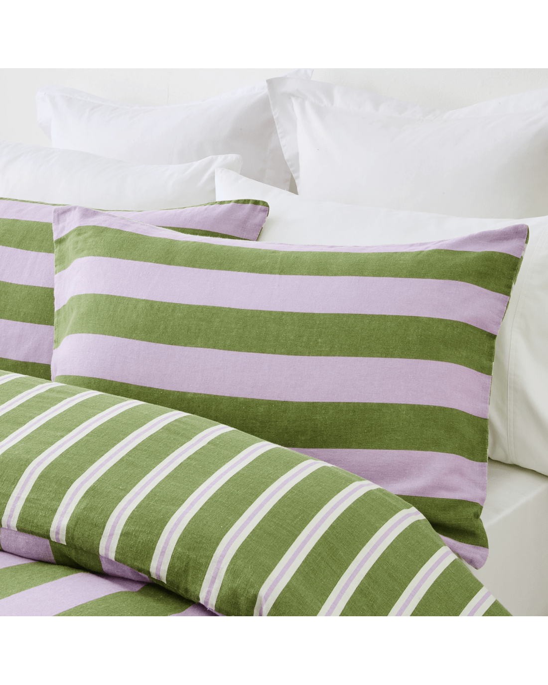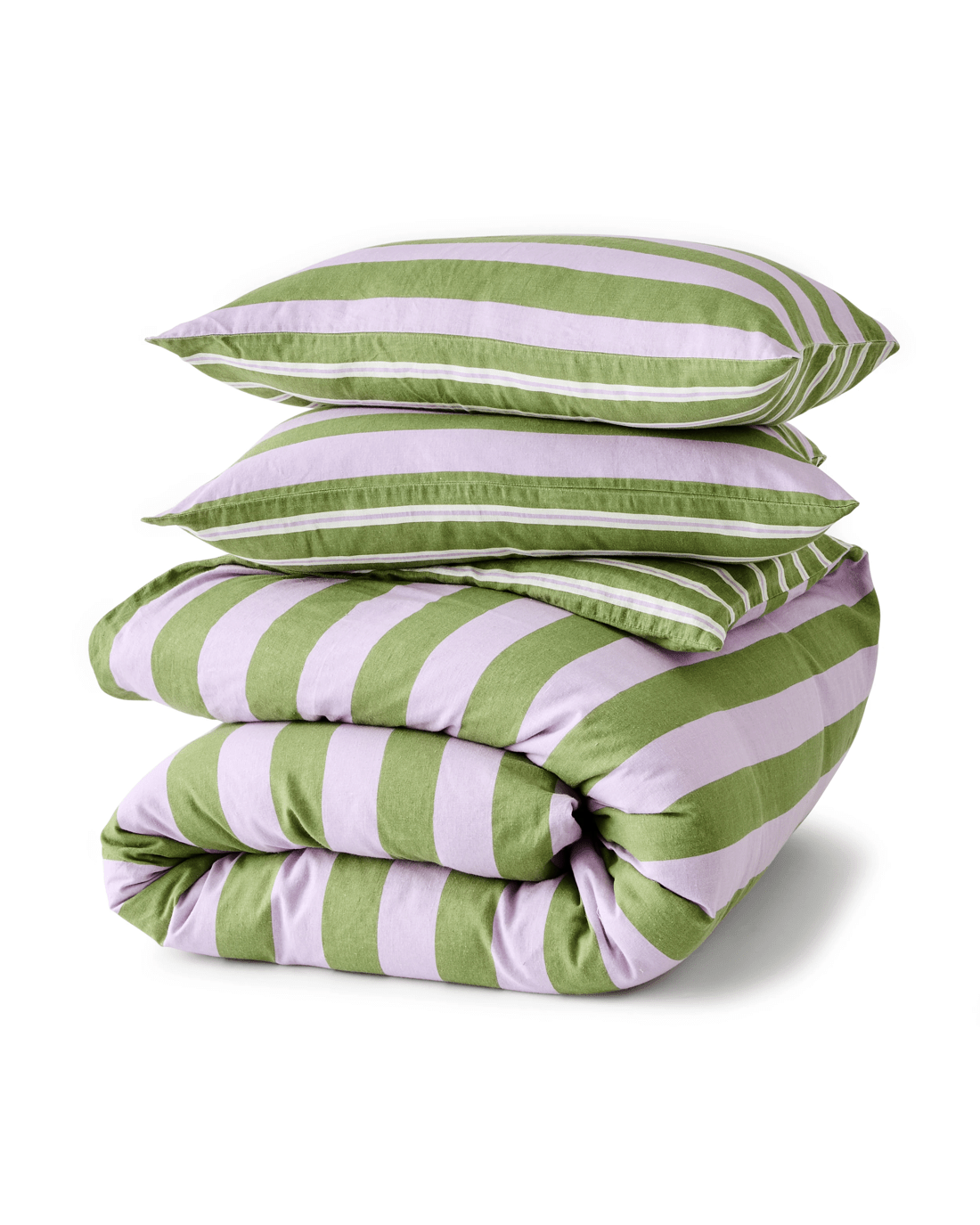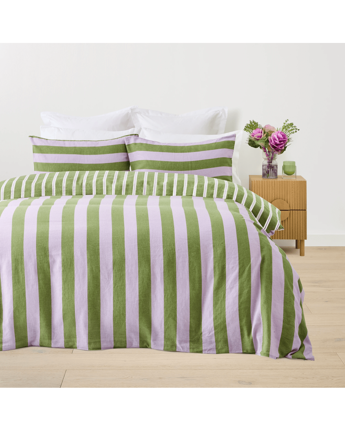 Sold by KmartStripe Linen Cotton Quilt Cover Set - Queen Bed, Lilac and Green