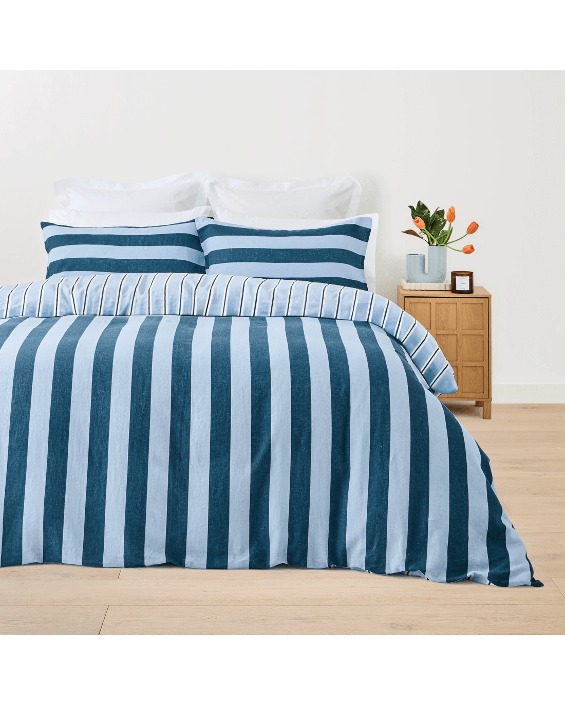 Sold by KmartStripe Linen Cotton Reversible Quilt Cover Set - King Bed, Blue