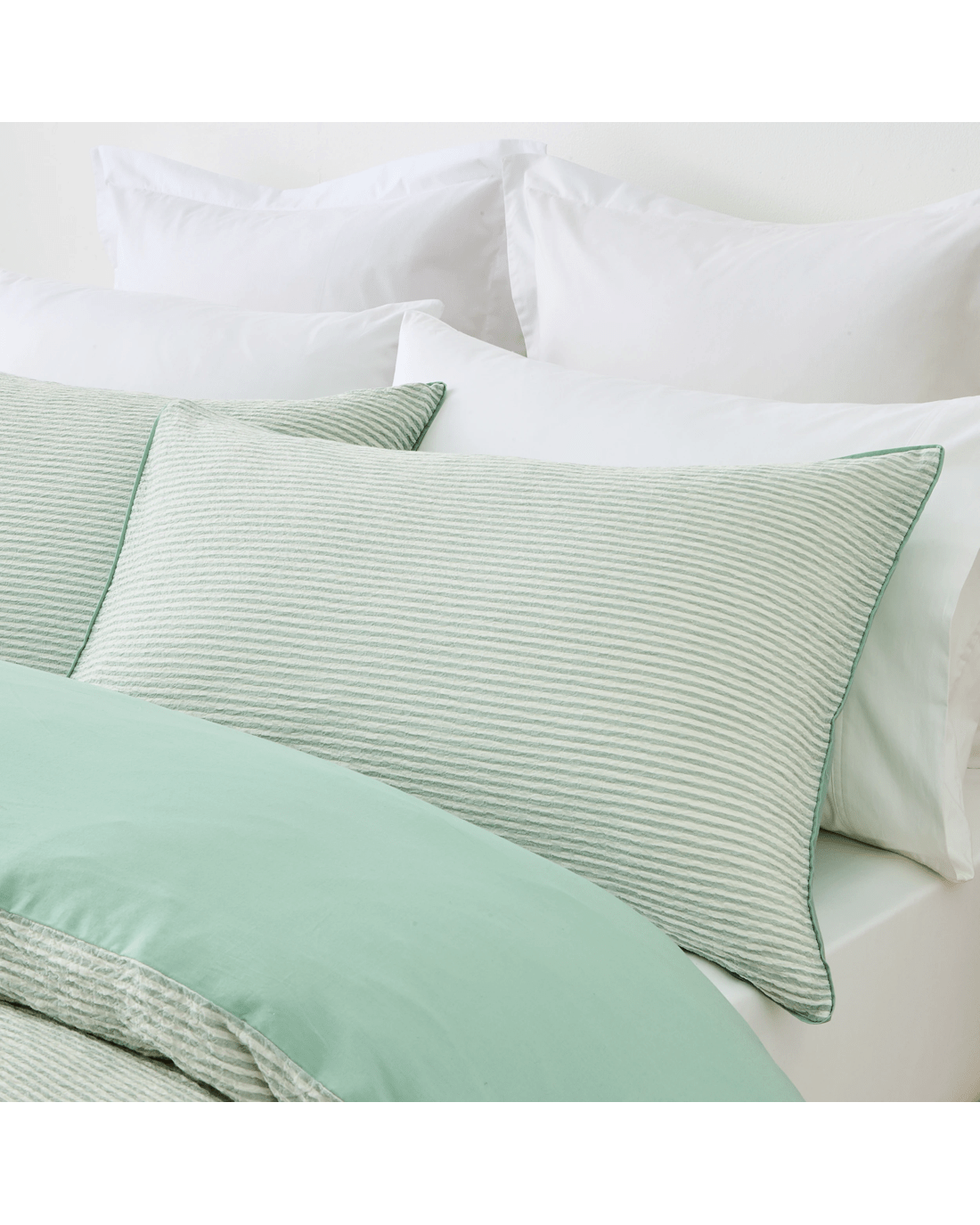 This Stripe Seersucker Quilt Cover Set adds a touch of elegance to your bedroom - a stylish way to update your bedding with a timeless look.