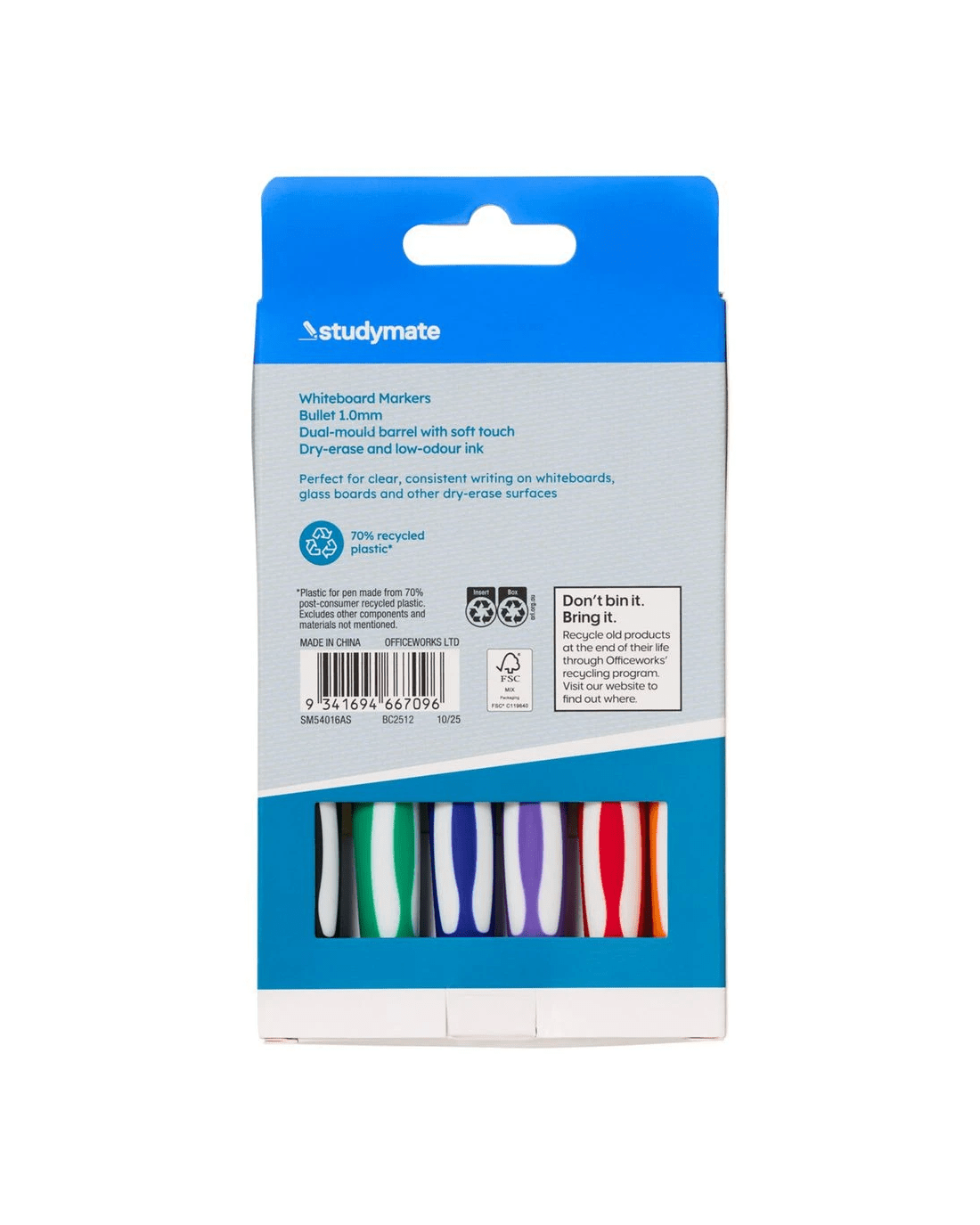 Sold by OfficeworksStudymate 1mm Whiteboard Marker Assorted 6 Pack