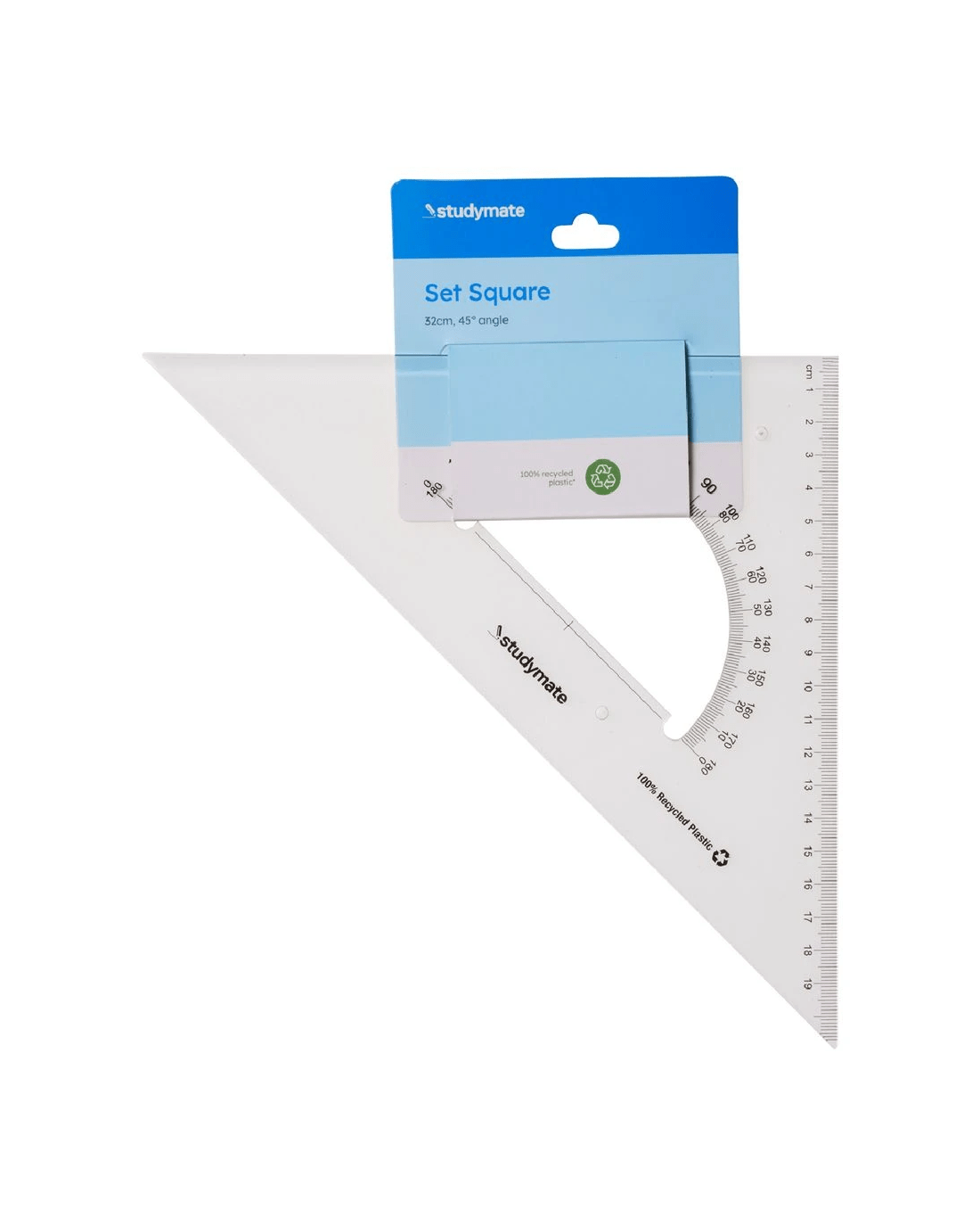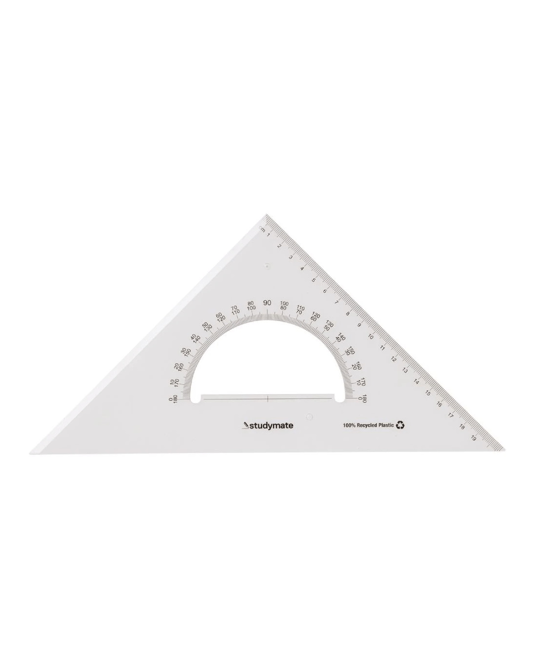 This Studymate Set Square is a must-have for all artists, designers, architects and mathematicians. Featuring a 45 degree angle, with measurements up to 32 cm in 1 cm increments, it's suitable for using with both fine, mechanical pencil lead and ink. This set square has been made from durable plastic for added peace of mind.