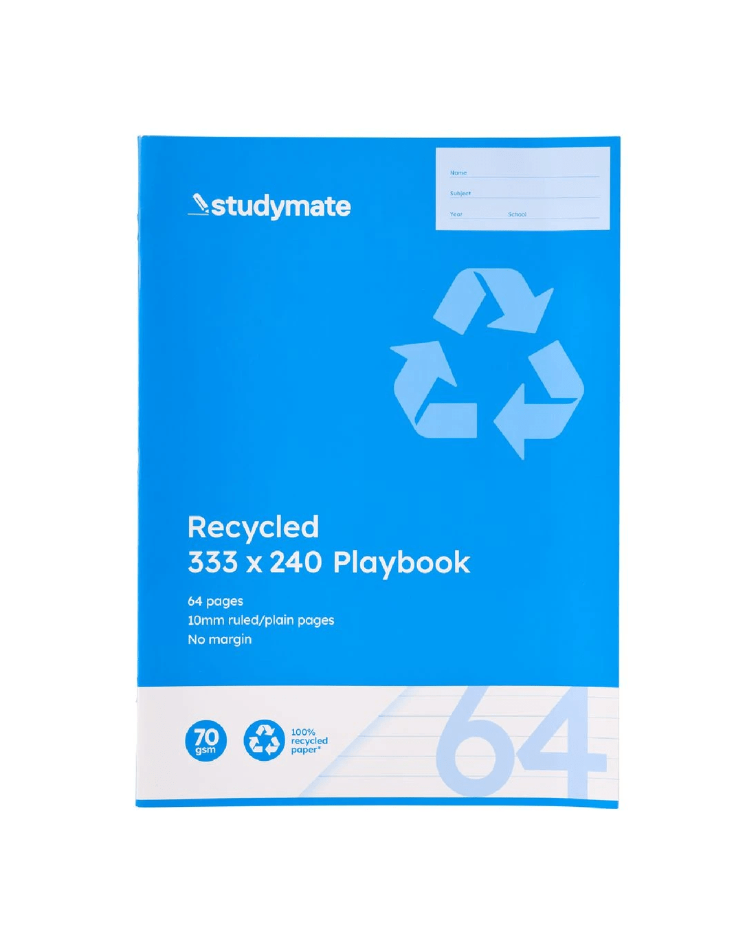 Sold by OfficeworksStudymate 333x240mm 70gsm 10mm Playbook QLD 64 Page Recycled