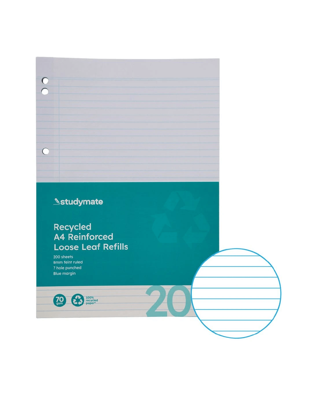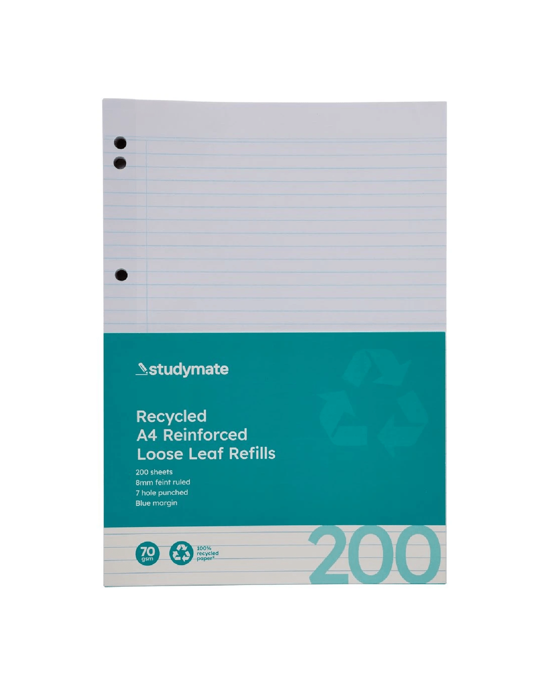 Sold by OfficeworksStudymate A4 8mm Ruled Recycled Loose Leaf Refills 200 Pack