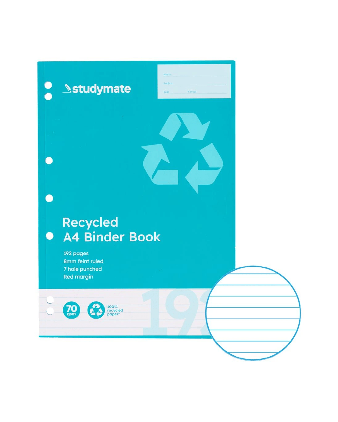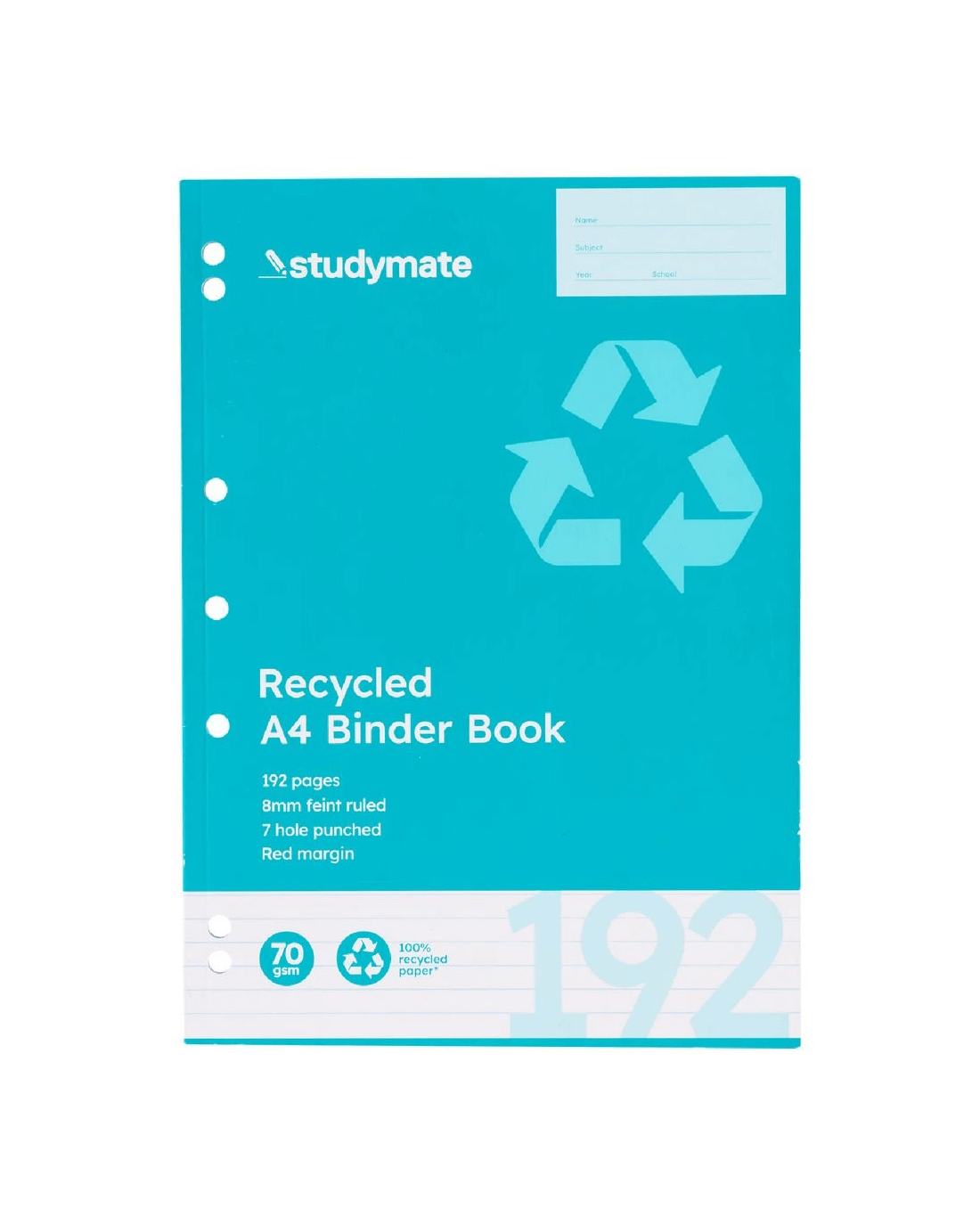 This Studymate A4 Binder Book contains high quality, 70 gsm paper to ensure that you can write on both sides of each page. The pages come pre-ruled with a red margin and 8 mm lines to help you write neatly. The margin features pre-punched holes so you can easily carry it and remove it from your binder.