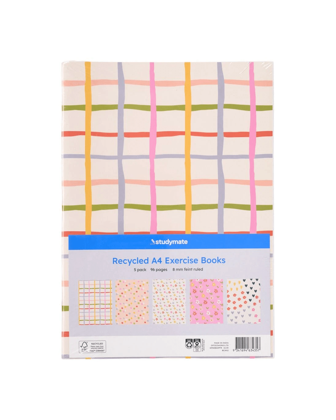 Sold by OfficeworksStudymate A4 Exercise Book Floral 96 Page 5 Pack