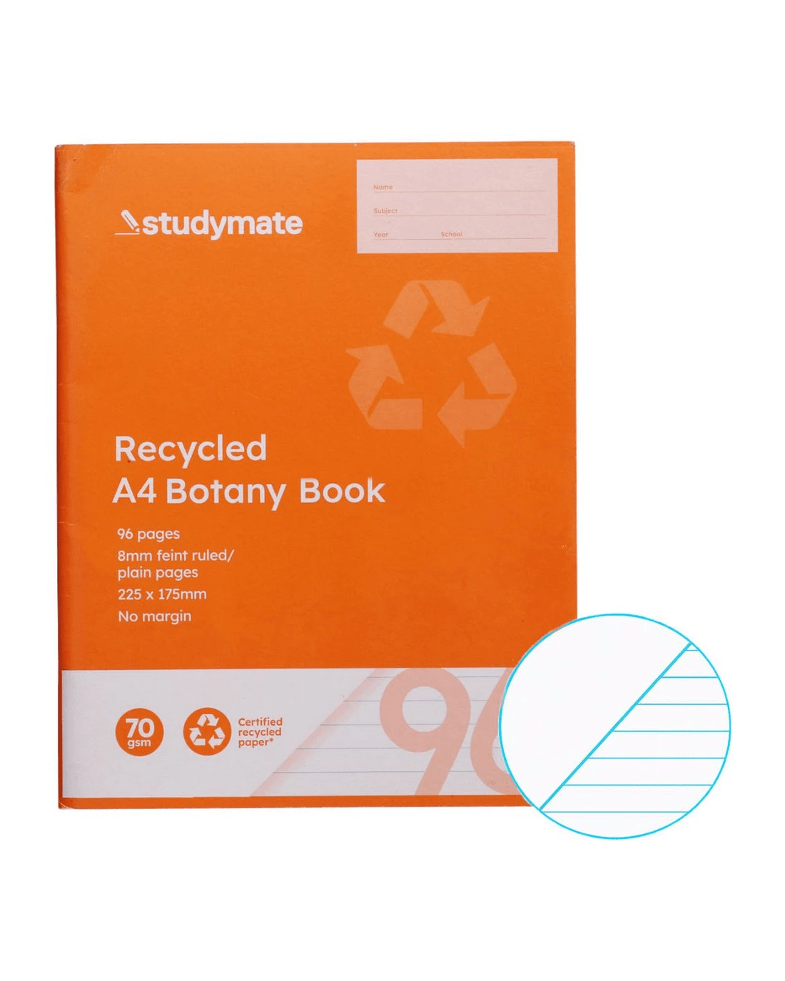 Sold by OfficeworksStudymate A4 Recycled 8mm Ruled Botany Book 96 Page