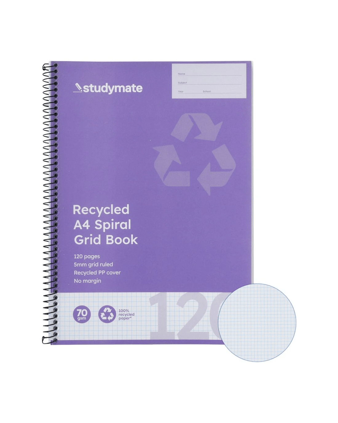 Studymate A4 Recycled Spiral Grid Notebook 120 Page