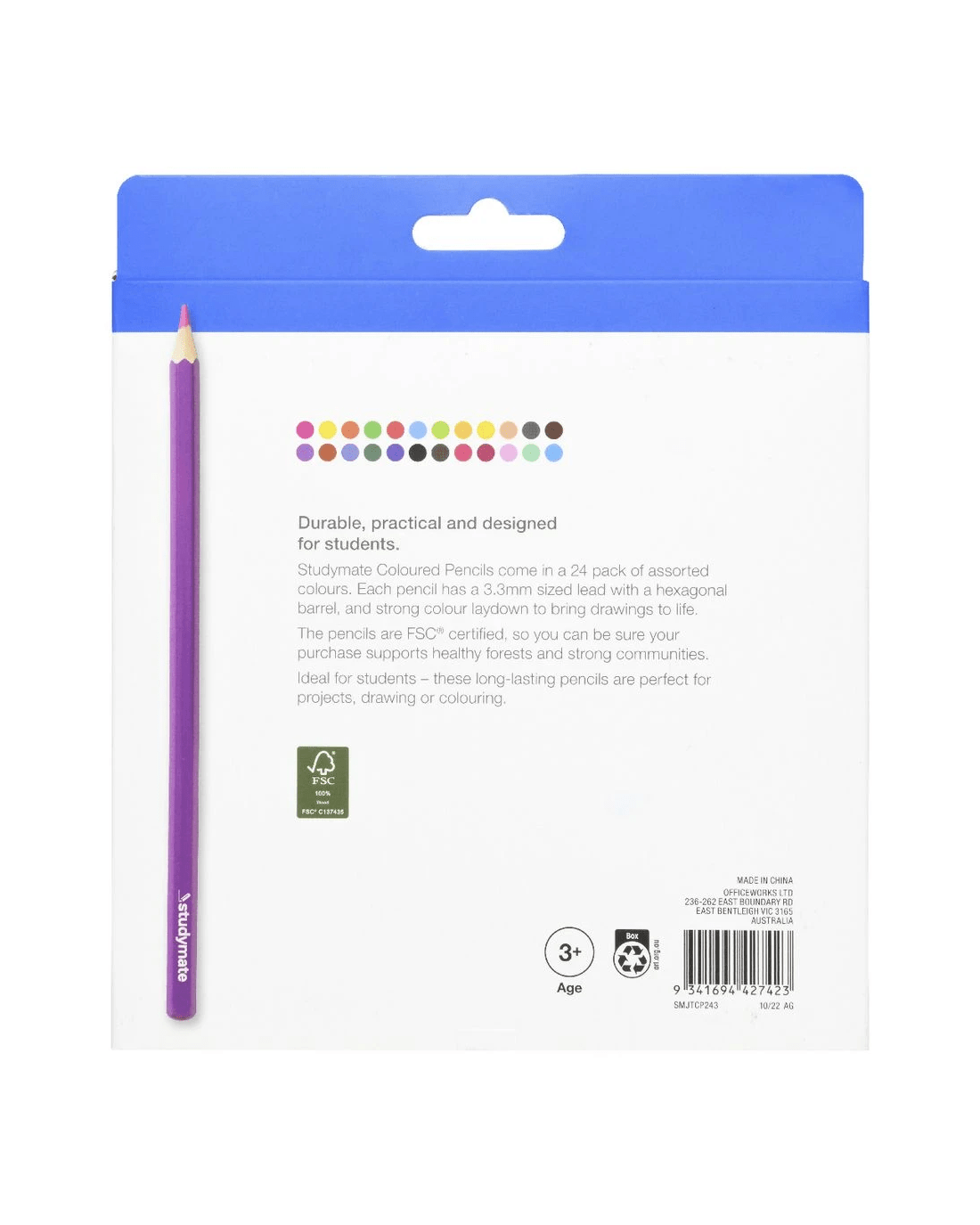 Studymate Coloured Pencils are perfect for drawing and colouring activities. The pack includes 24 pencils in assorted colours so you can create bright, vibrant and colourful artworks.