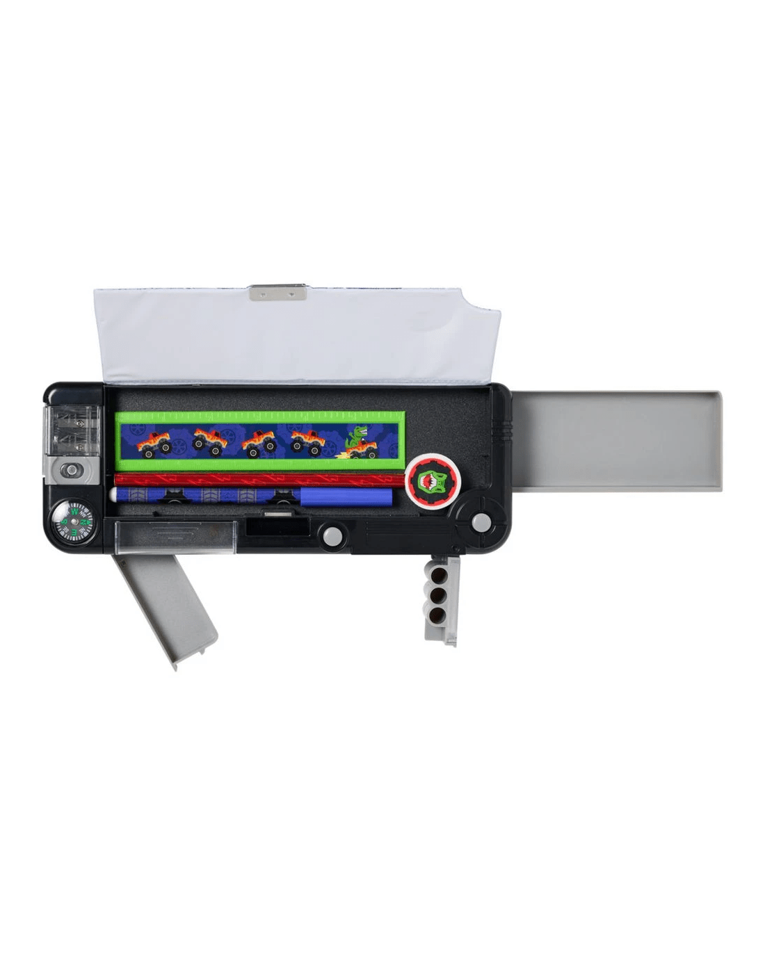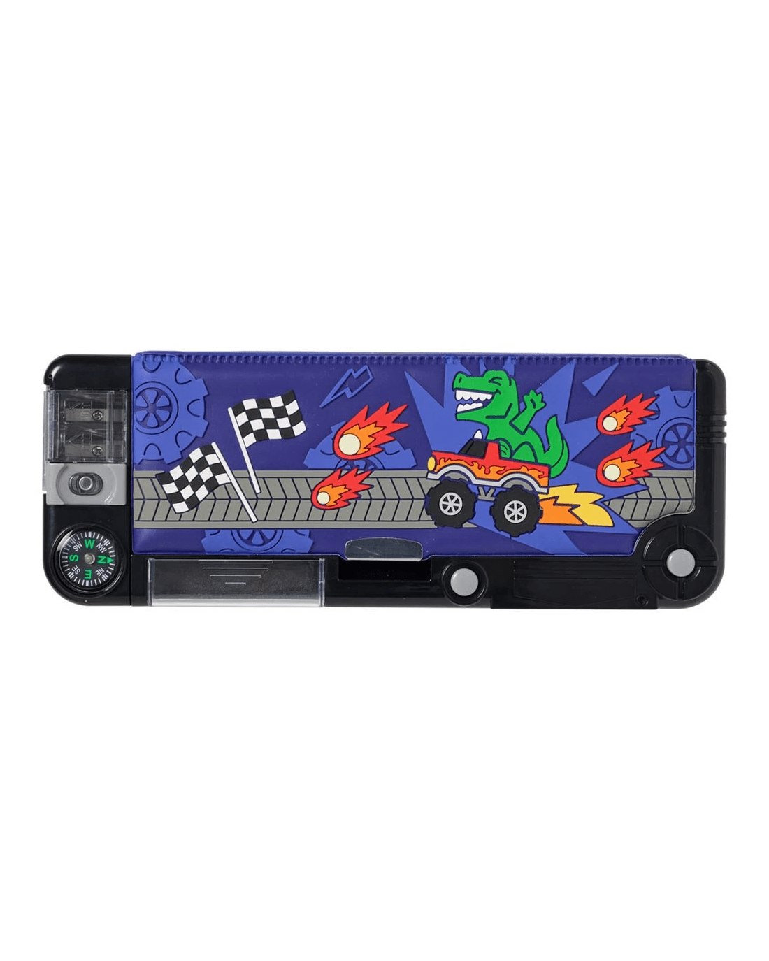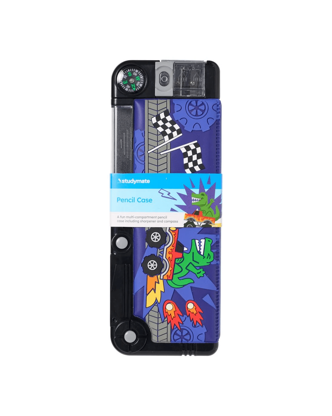 This stylish Studymate pencil case is a great way to store your belongings. It's got a secure magnetic closure to keep your things safe and sound. Plus, it has a fun Dinosaur theme.