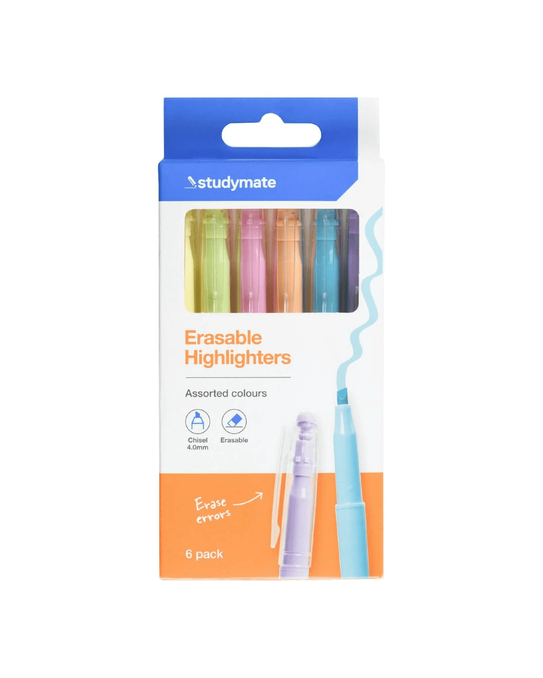 Sold by OfficeworksStudymate Erasable Chisel Highlighters Assorted 6 Pack