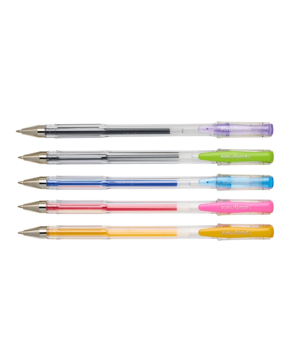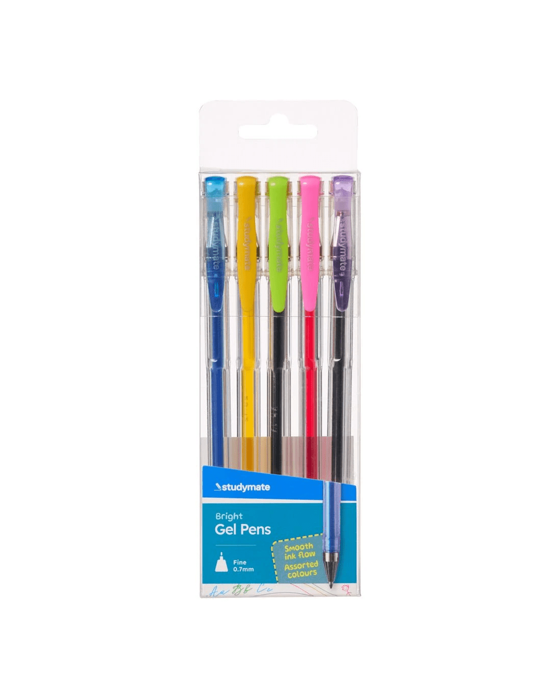 This Studymate Gel Pen pack includes five vibrant colours to bring energy to your notes and creative projects. Each pen features smooth gel-based ink and a clear plastic barrel so you can easily see when it's time for a replacement. Plus, the 1 mm medium tip delivers consistent lines for everyday writing.
