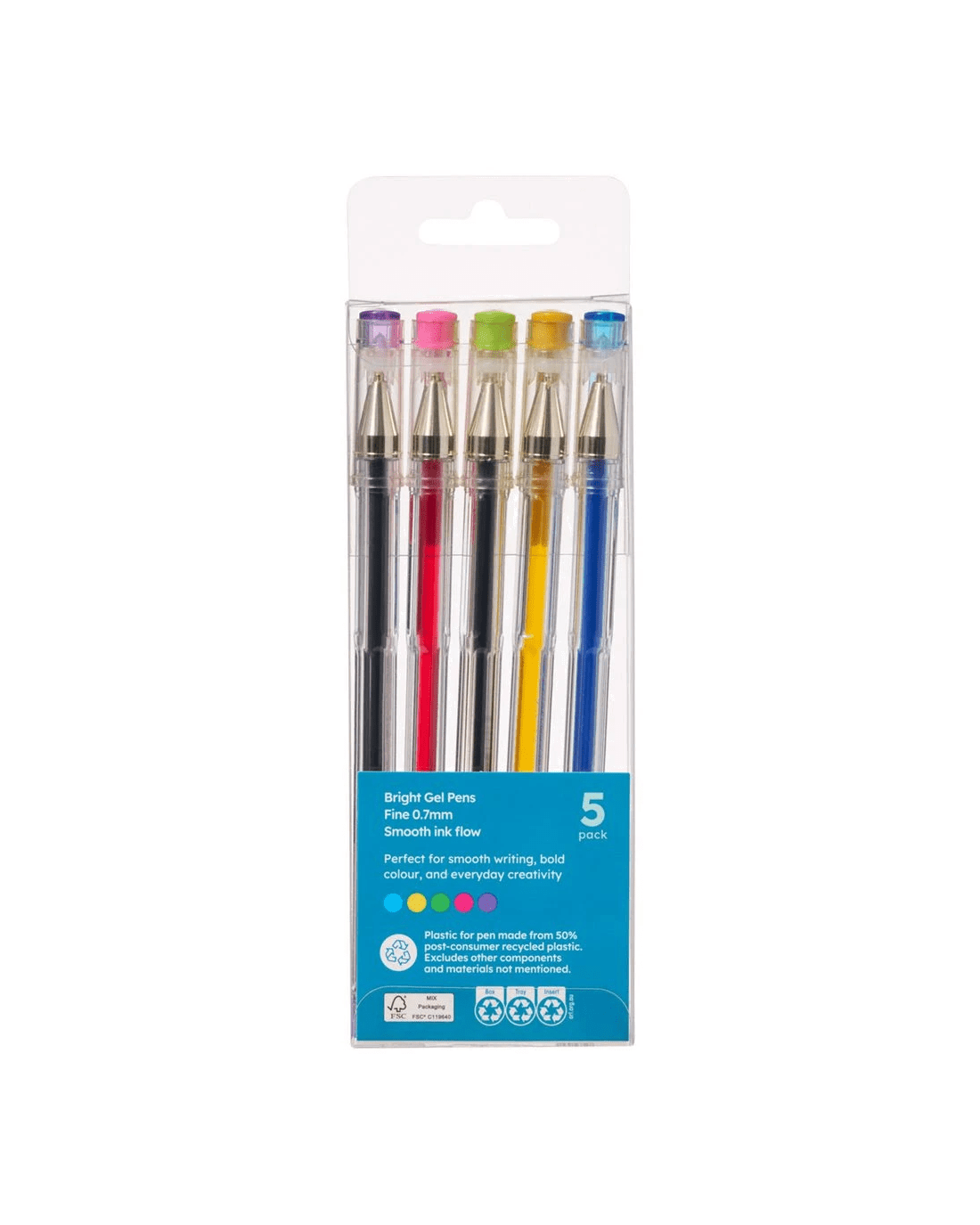 - This pack includes pens in Blue, Yellow, Green, Pink, Purple.