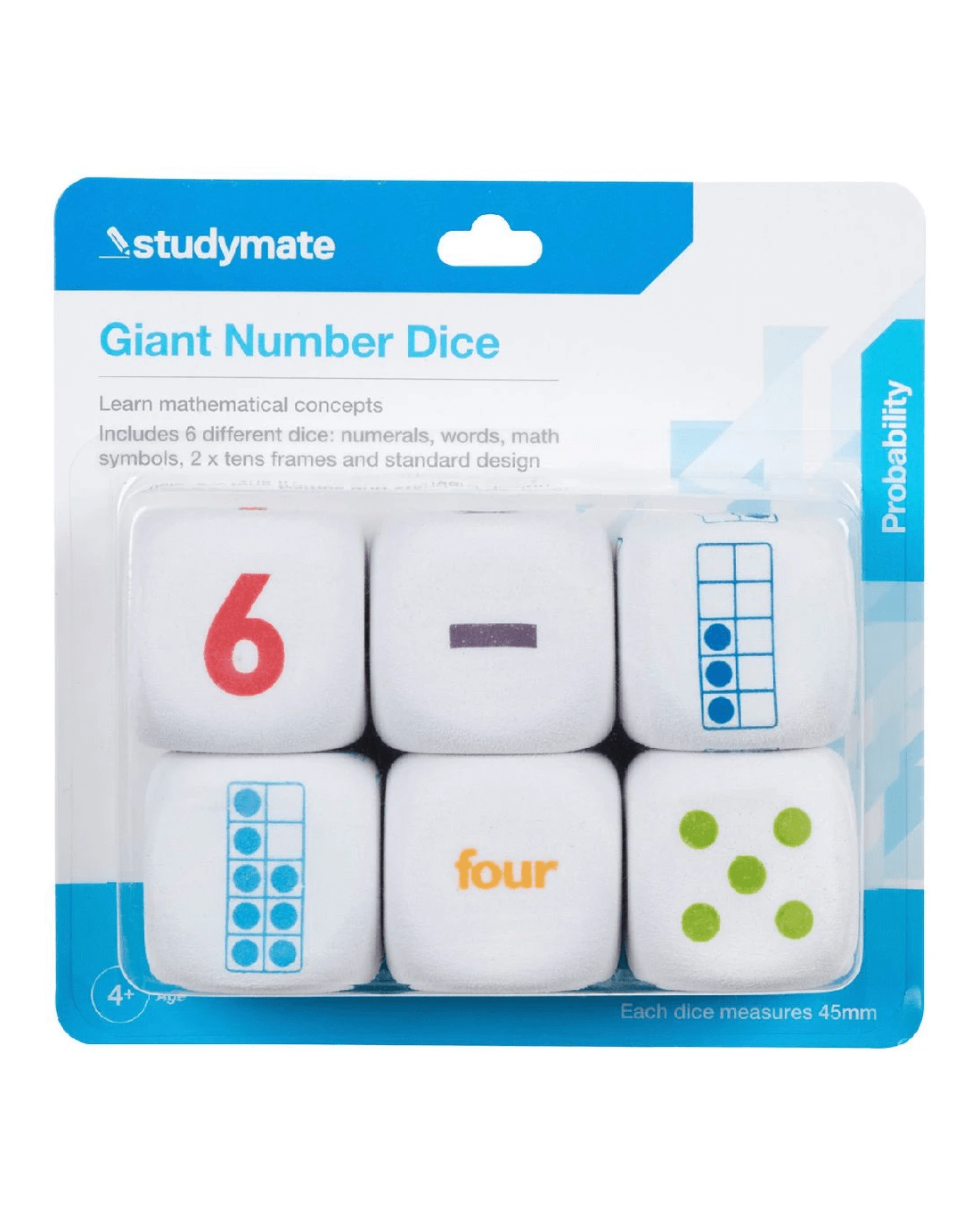 These Studymate Giant Number Dice can be used for a variety of activities and games. They are a fantastic way to increase your understanding of numeracy and build basic maths skills. The dice are made from soft but durable EVA foam.