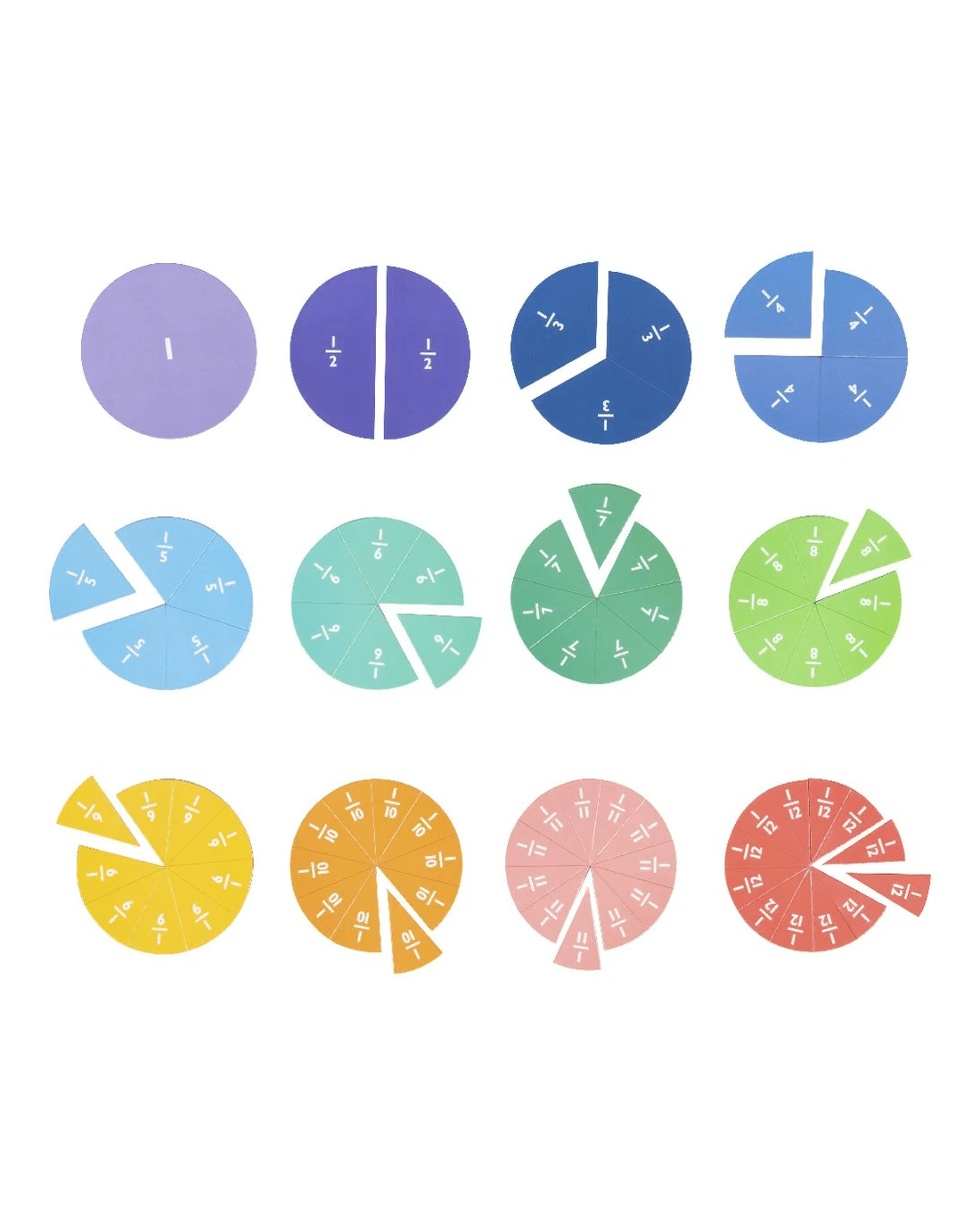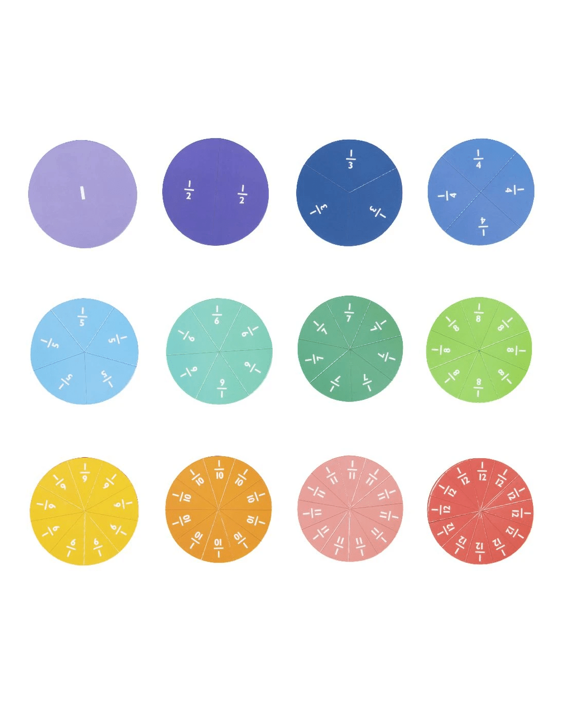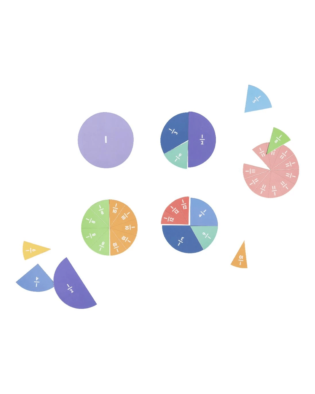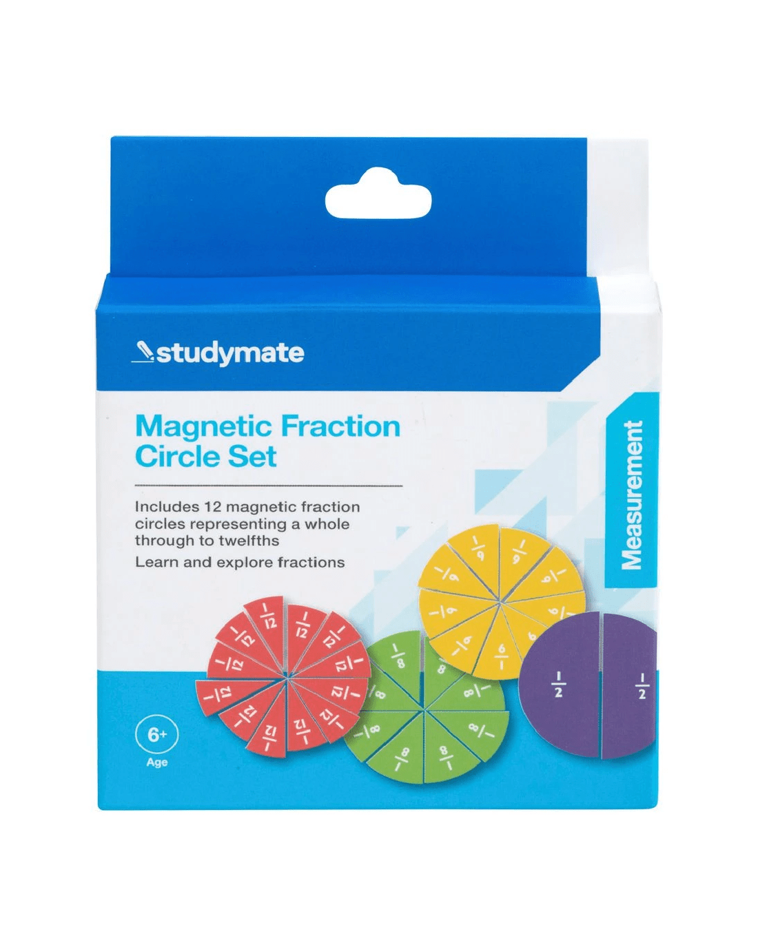 These Studymate Magnetic Fraction Circles help develop an understanding of the relationship between parts of one whole. The 12 circles, representing a whole through to twelfths, have a 10 cm diameter and a magnetic backing that allows them to stick to magnetic chalkboards, dry-erase boards and fridges. They are ideal for learning about fractions in a visually stimulating way.