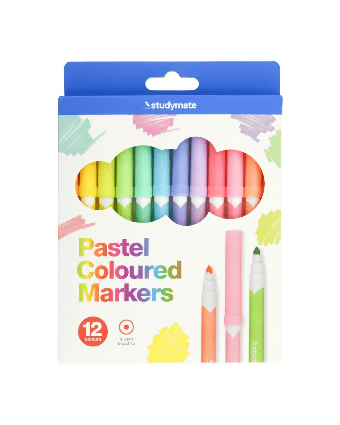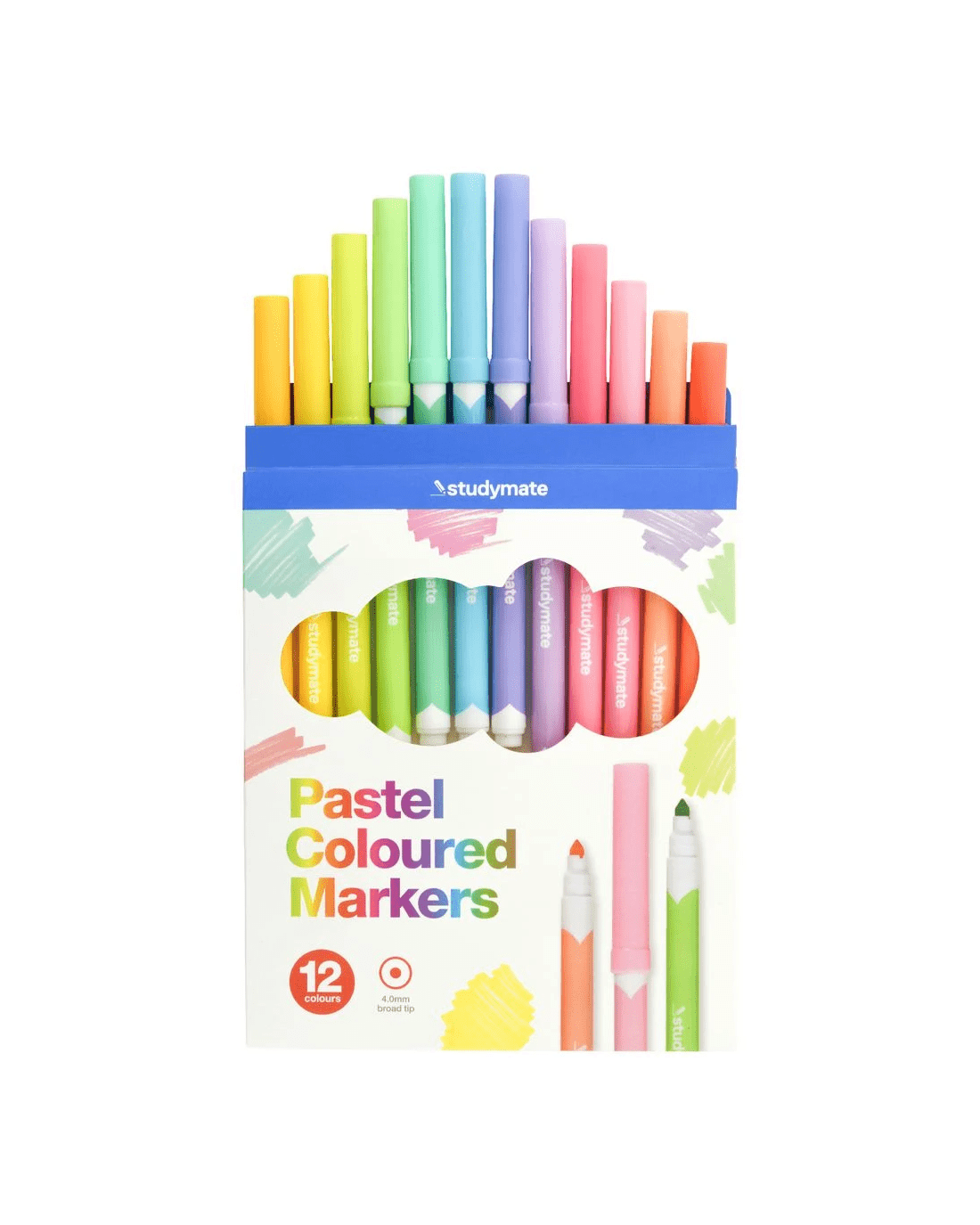 These Studymate Coloured Pastel Markers are the perfect addition to your art tools. They come with water-based ink in assorted pastel tones, each with a fine point to stay neat and tidy.