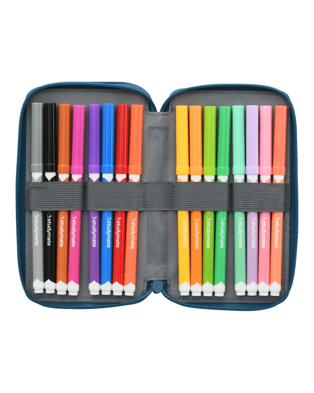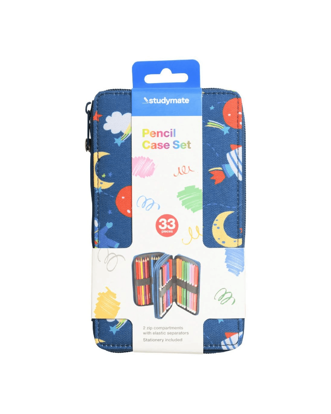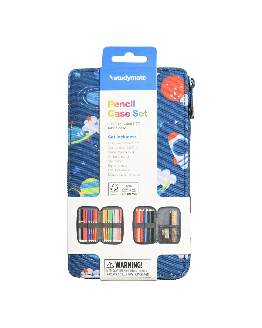 Be ready for any class with this Studymate Pencil Case Set. This 32 piece set includes 12 x Studymate pencils, 12 x Studymate markers, 4 x Studymate assorted pastel markers, a grey lead pencil, a ruler, an eraser and a sharpener. It also comes with a space-themed pencil case for you to store your stationery securely.