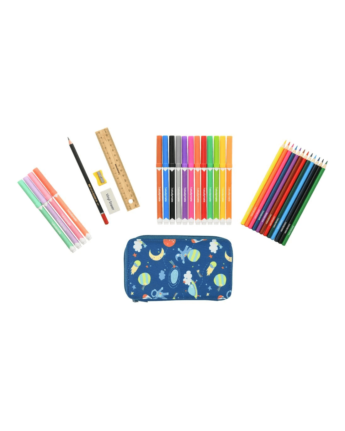 - It comes with a space-themed pencil case so you can secure all your items securely.