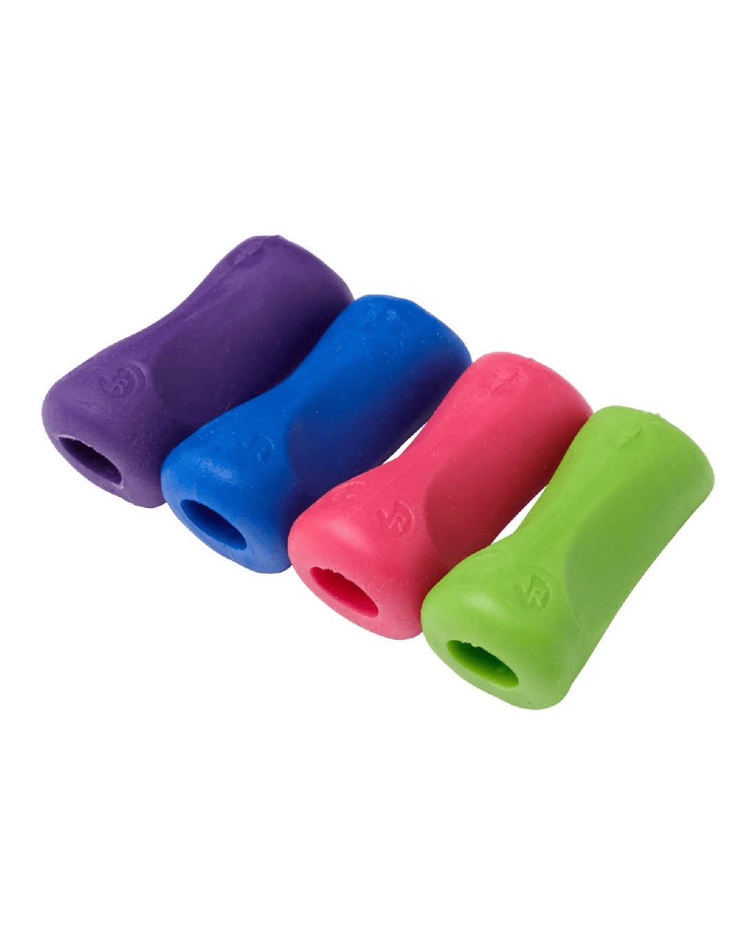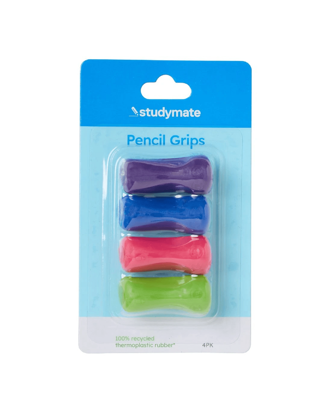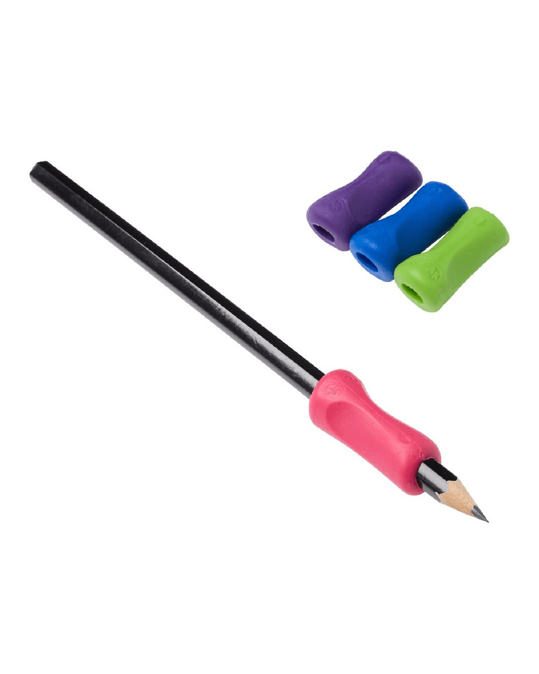 - This pack contains 4 pencil grips in purple, blue, pink and green.
