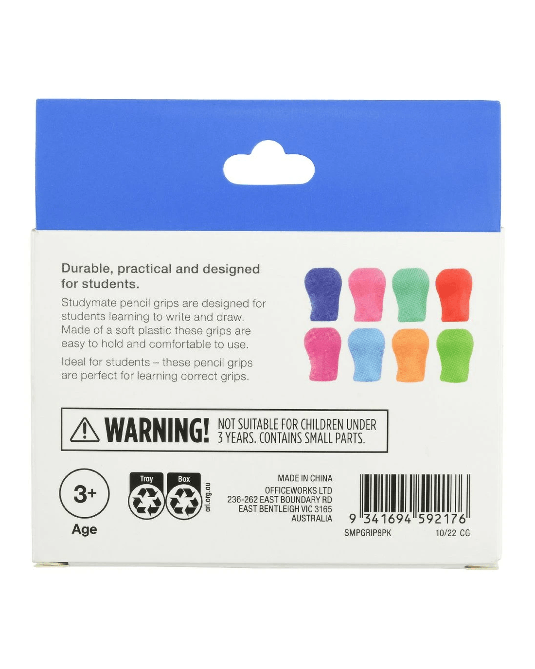 These Studymate Pencil Grips are perfect for elevating your comfort level while you write and draw. They come in assorted colours and fit on most standard pencils.