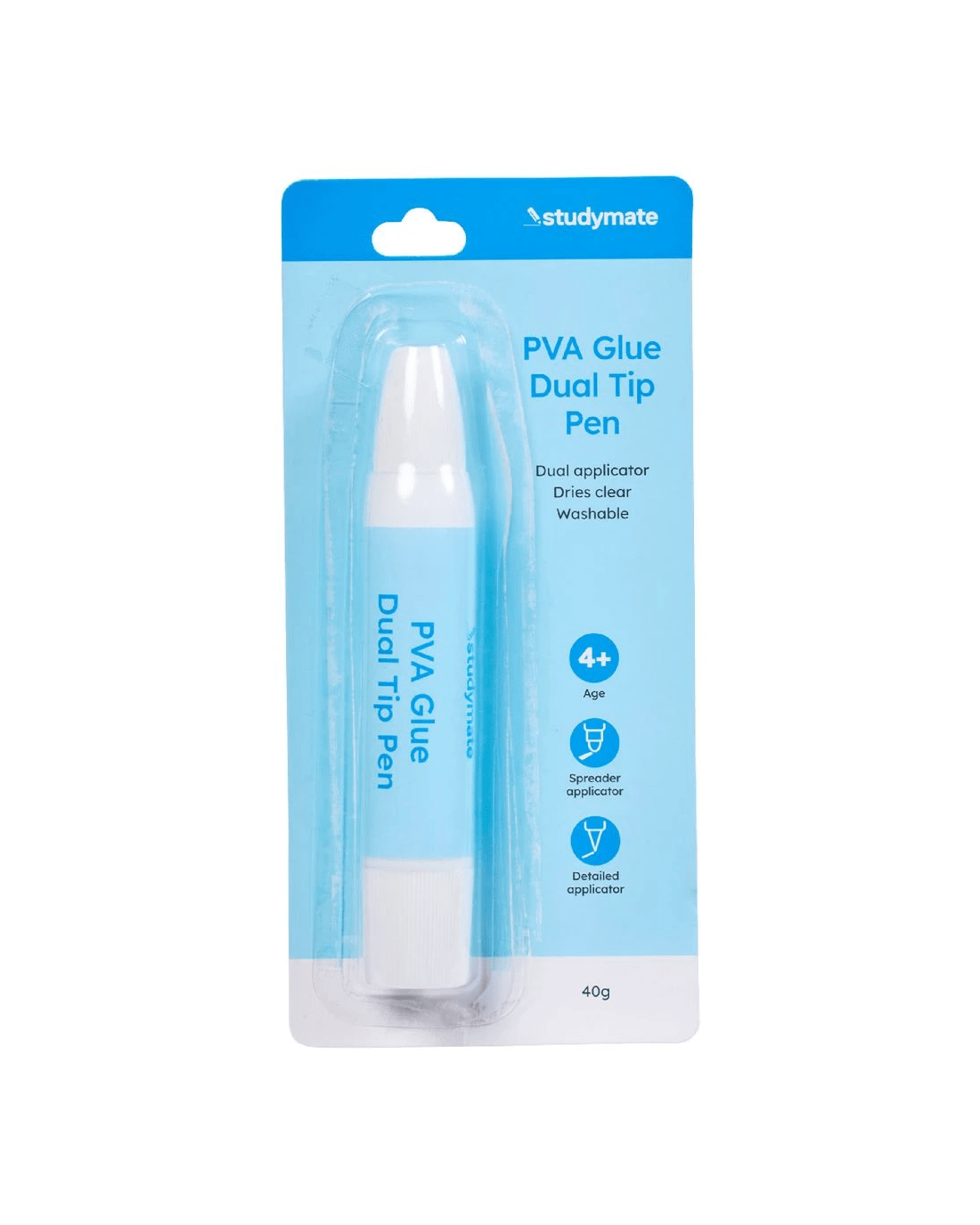 This Studymate PVA Craft Glue Pen contains a water-based adhesive, perfect for bonding paper, cardboard, wood, wool, fabrics and more. It features a dual tip pen design for precision, making it ideal for those more intricate projects. It comes in a 40 g bottle and has a 20 - 40 minute setting time, with maximum strength after 12 hours.