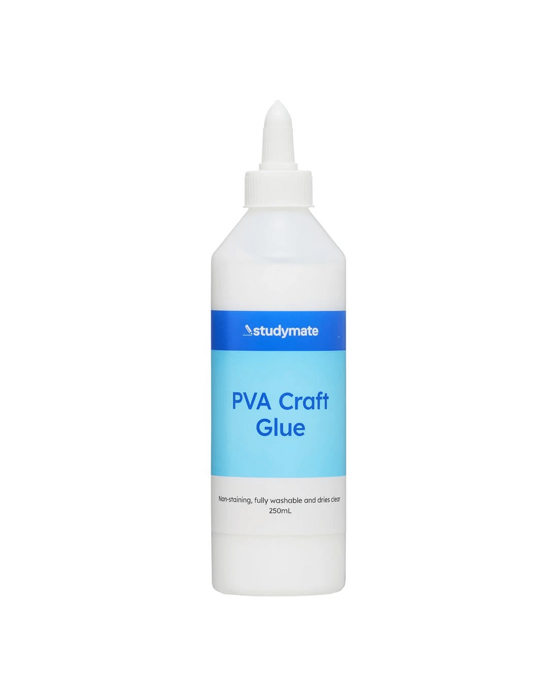 Studymate PVA Craft Glue is a water based adhesive, perfect for bonding paper, cardboard, wood, wool, fabrics and more. It is ideal to keep with your art and craft supplies so you're always ready to stick different materials together.