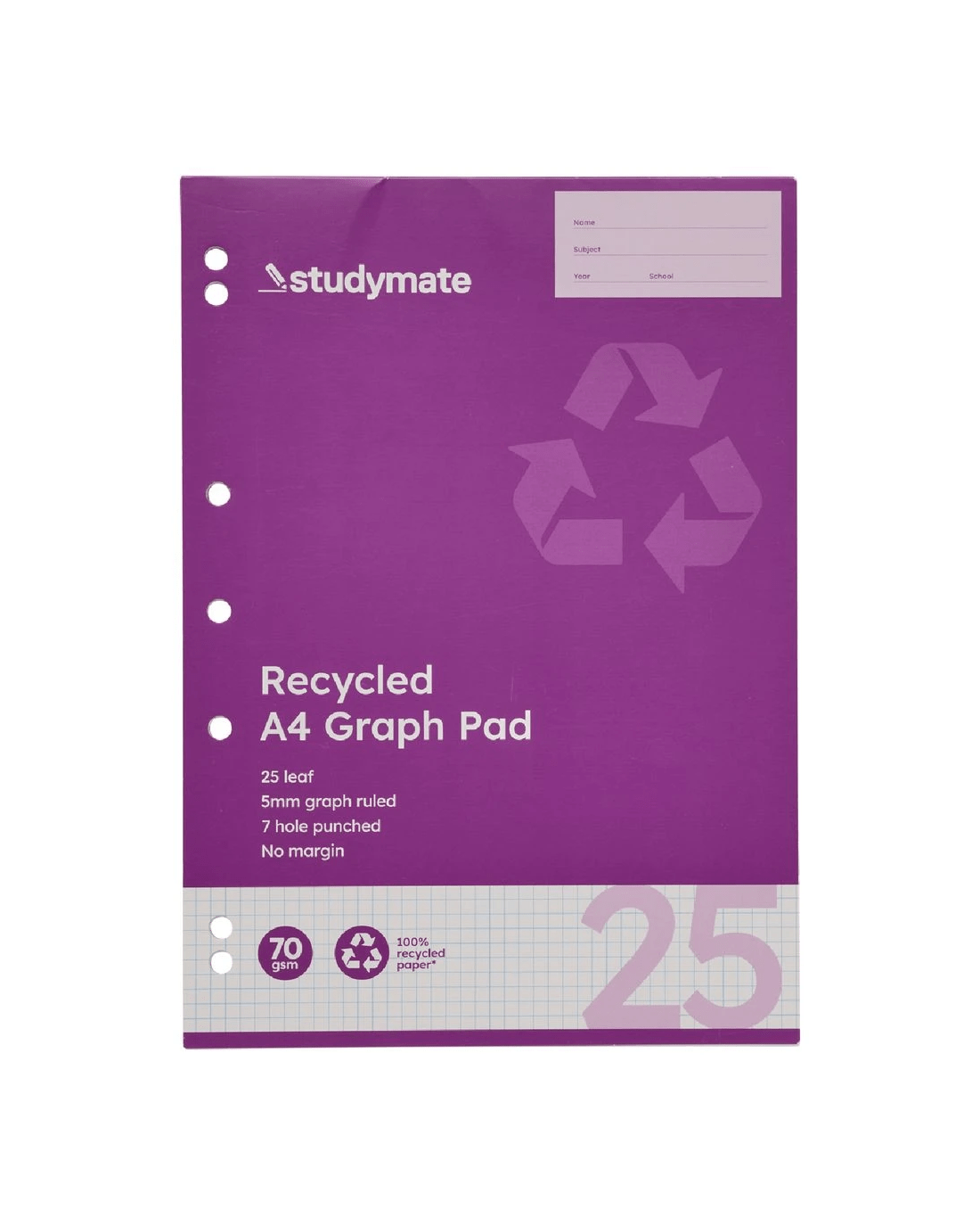 Sold by OfficeworksStudymate Recycled A4 5mm 25 Page Graph Pad