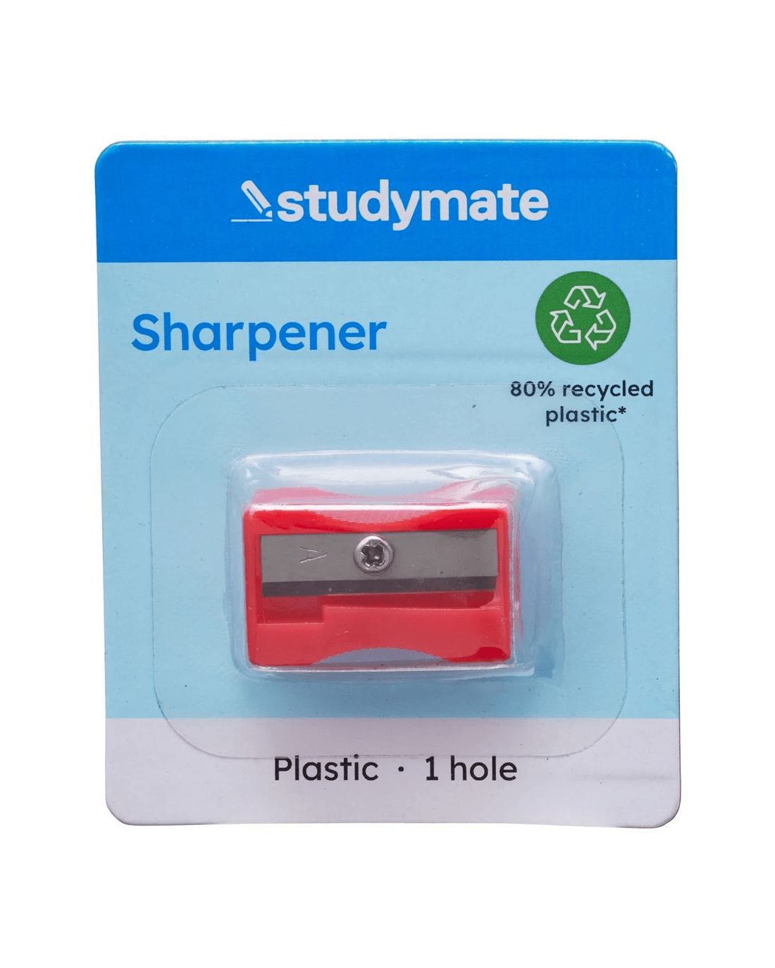 Sold by OfficeworksStudymate Recycled Plastic Wedge 1 Hole Sharpener Red