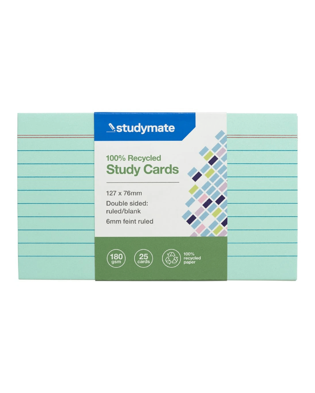 Studymate Study Cards Ruled 127 x 76mm Green 25 Pack