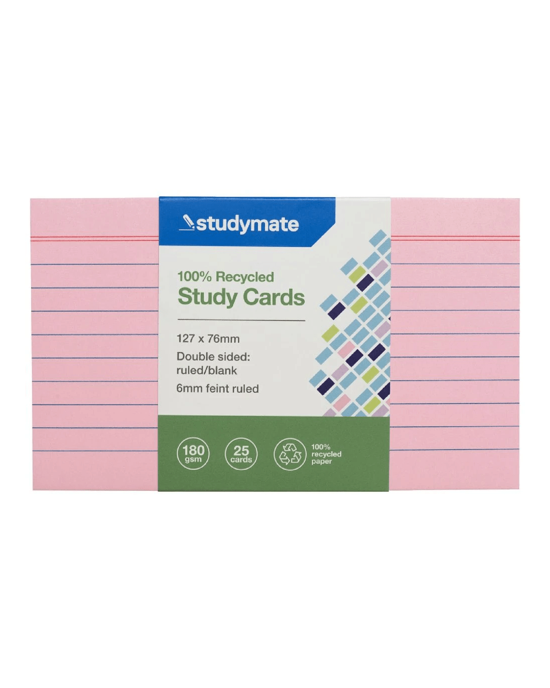 Studymate Study Cards Ruled 127 x 76mm Pink 25 Pack
