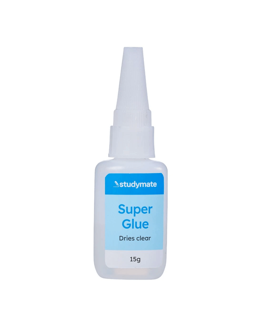 This Studymate Super Glue is fast bonding, strong and easy to use. It's suitable for applying to a variety of different materials including most metals, plastics, rubber, ceramics, laminates and fabric, making it handy for repairing items at home or in the workplace. It comes in a 15 g bottle and dries clear.