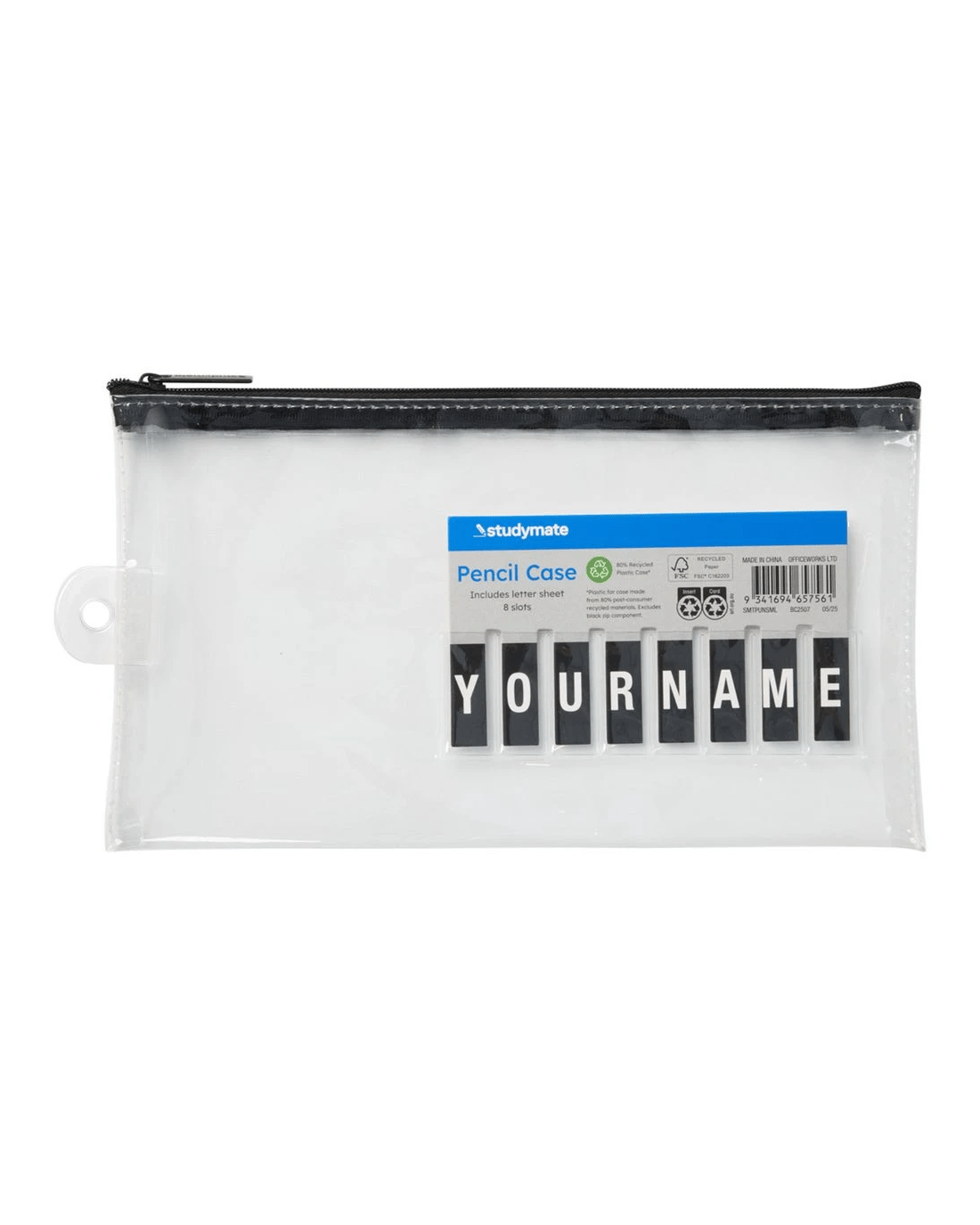 This Studymate Name Pencil Case is perfect for keeping your stationery items organised and together. The case has space on the front for you to insert your name, allowing you to quickly and easily label your pencil case.