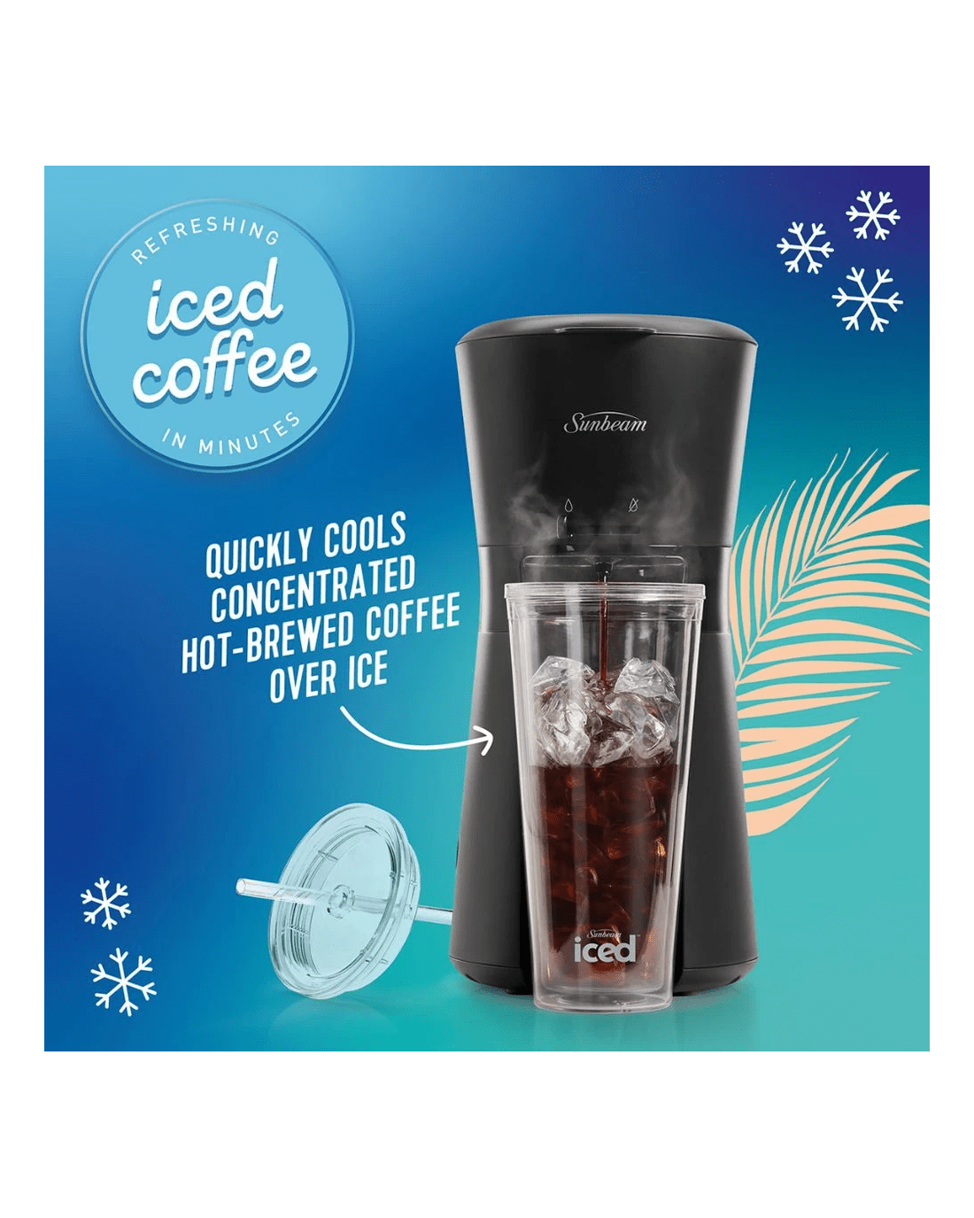 Skip the café queue and make refreshing iced coffee at home with the Sunbeam Iced Coffee Machine. This single-serve, pod-free brewer delivers bold, never-watered-down iced coffee directly into a reusable 650ml tumbler—perfect for on-the-go sipping with less waste. With easy measurements and a simple 3-step process, it’s iced coffee made easy and delicious.