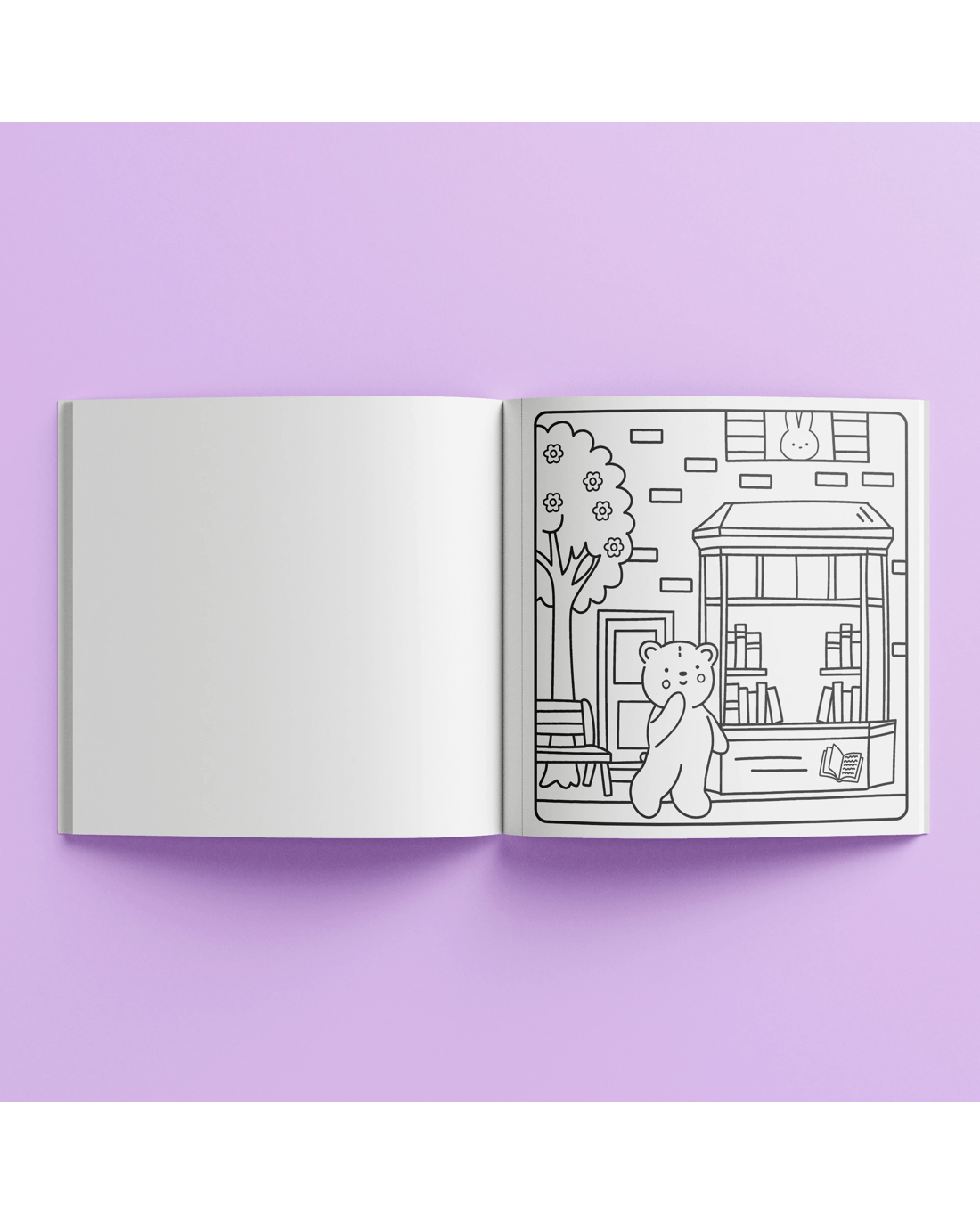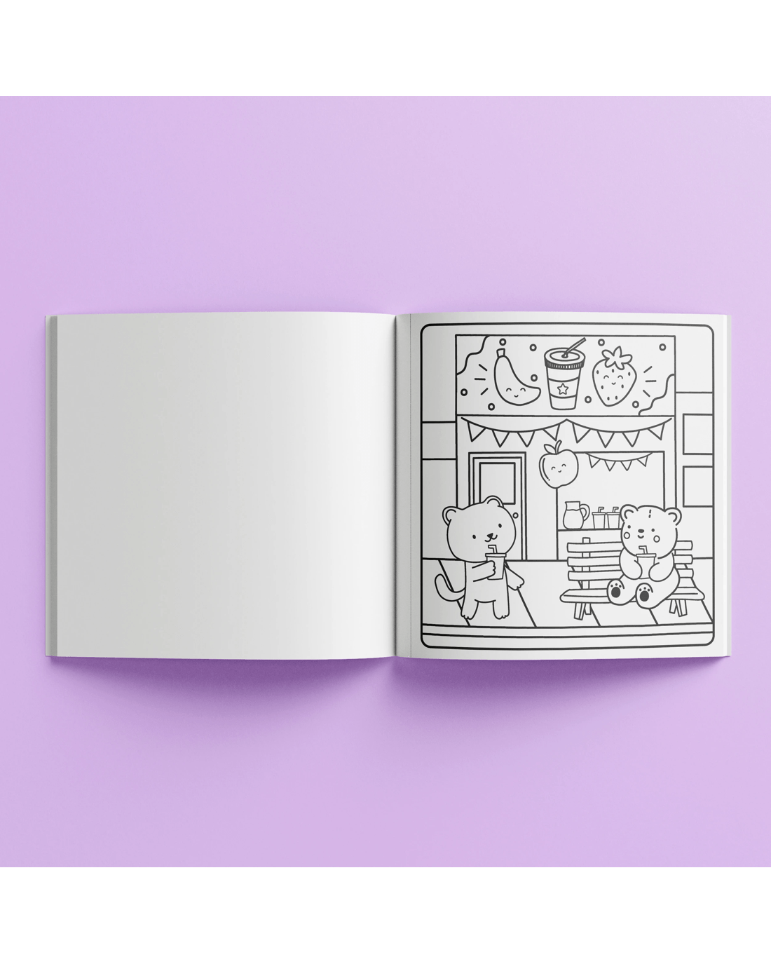 A bold and simple colouring book with hand-drawn images. Thick paper and an extended gatefold to place behind each page ensure there is no bleeding of artwork though the pages.