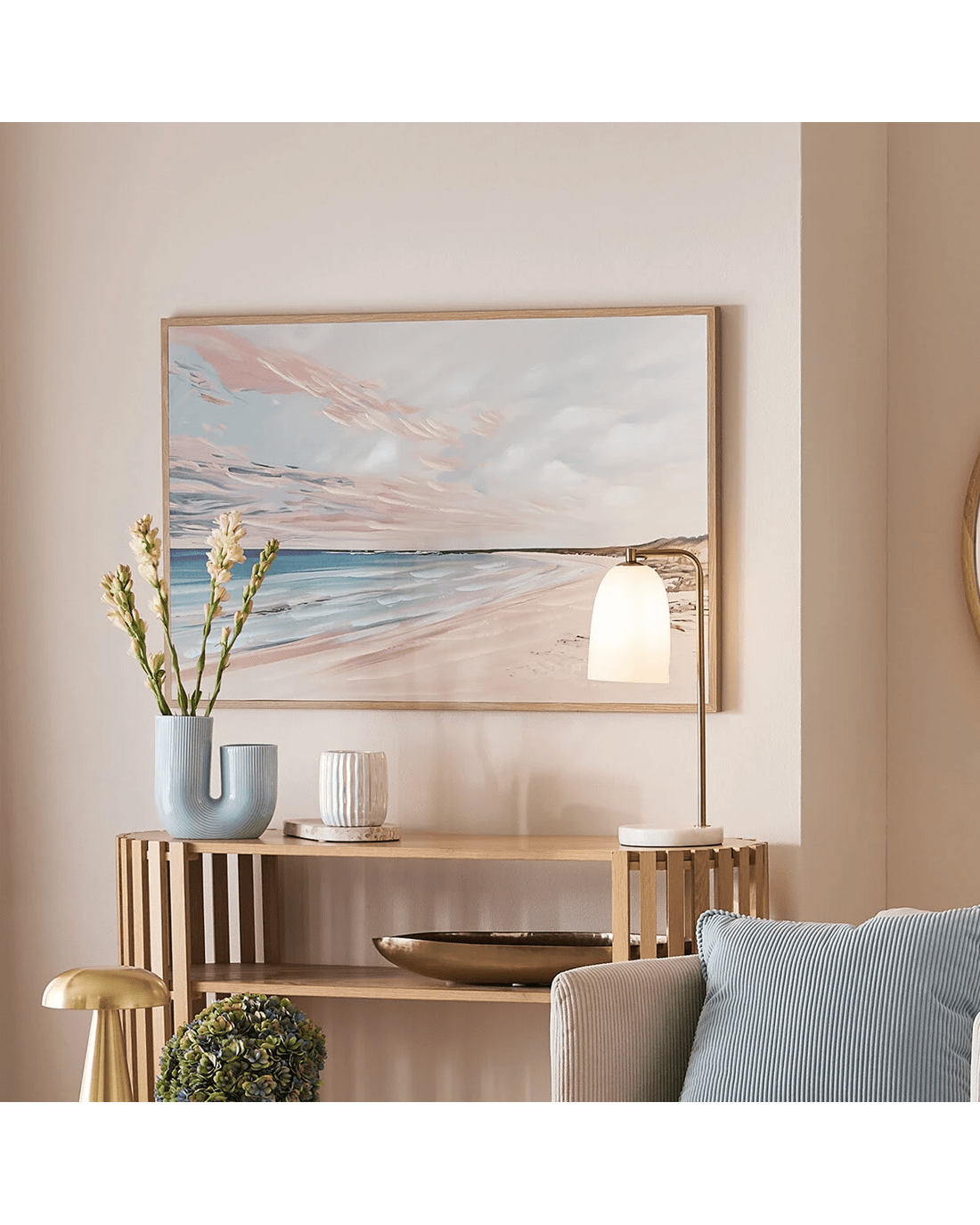 The Sunset Beach Framed Canvas will add calming, coastal vibes to any blank wall in your home. It captures the beauty of a sunset over the ocean in vibrant hues.