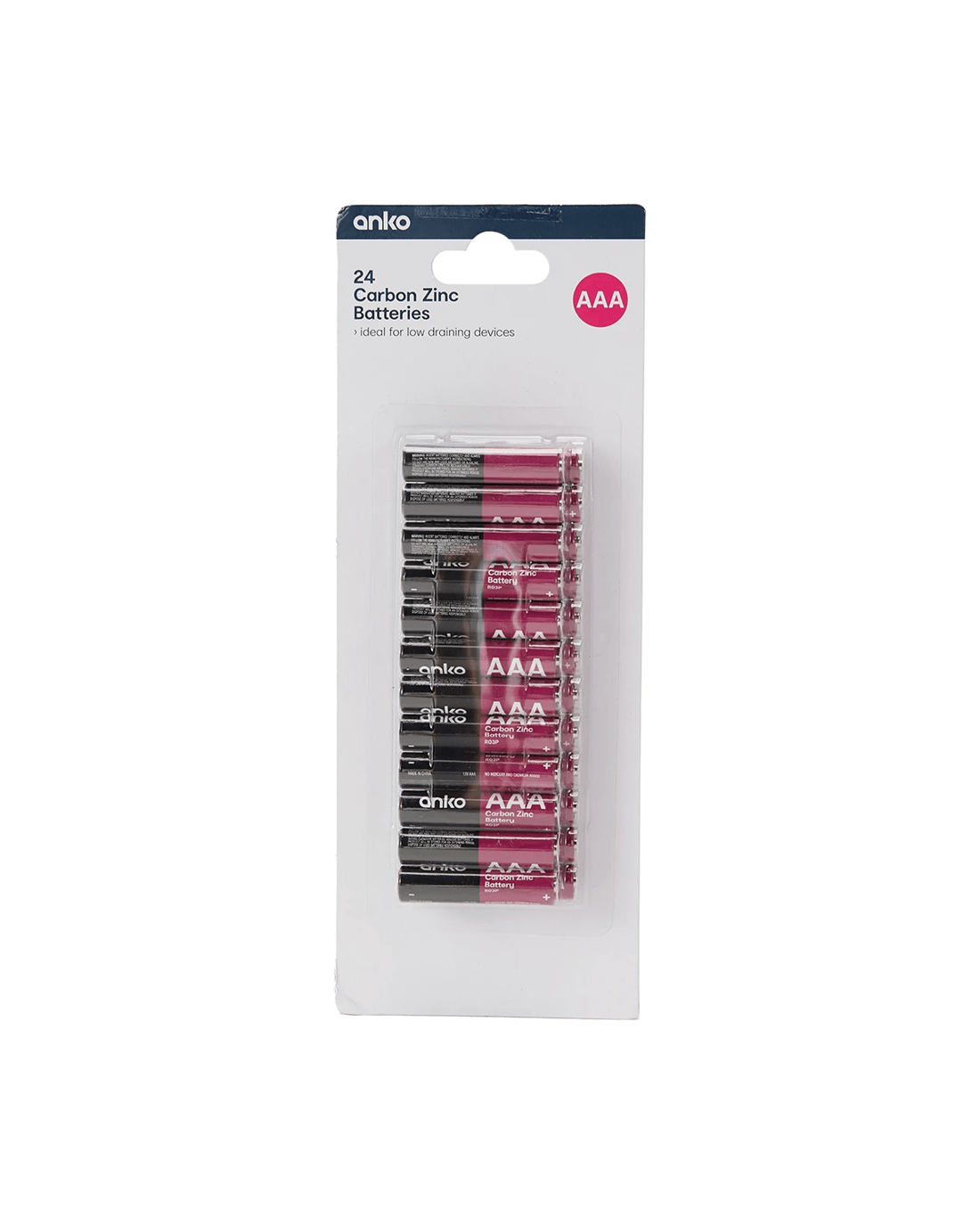 • Includes 24 x AAA heavy duty carbon zinc batteries