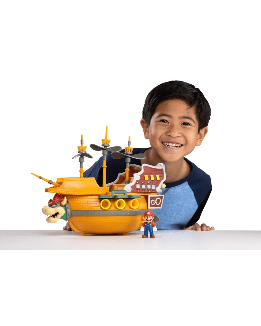 Mario must conquer the Airship to stop the invasion of the Mushroom Kingdom. It's up to you, Mario and his friends to defeat Bowser. This playset works with most two-and-a-half-inch figures. Suggested for kids age 3 or older.