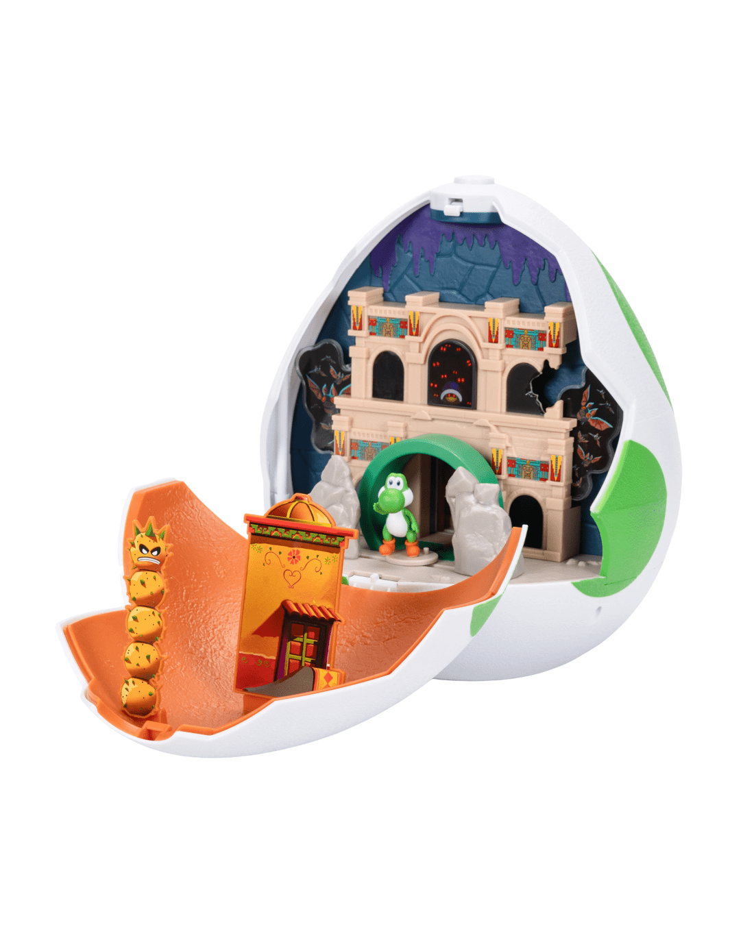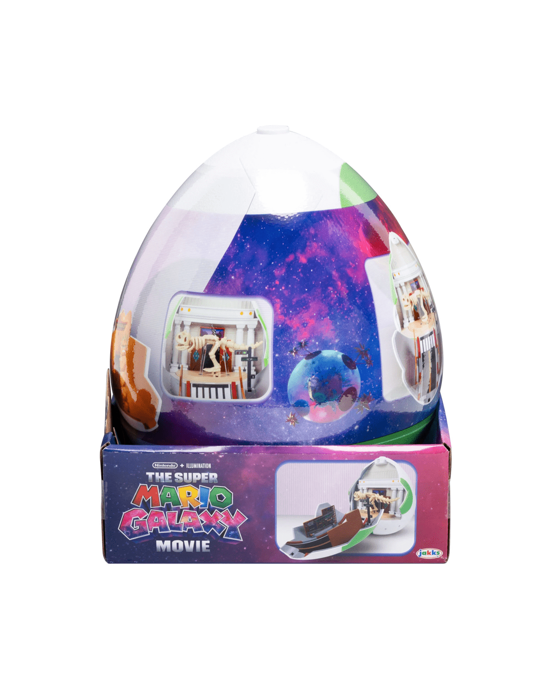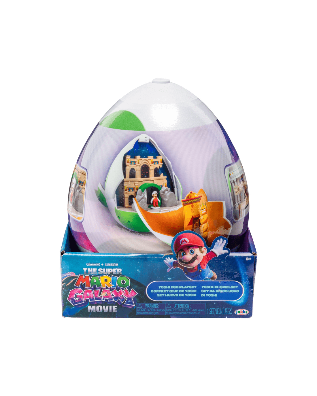 The Super Mario Galaxy Movie Yoshi Egg Playset is both a giant Yoshi egg and a double-sided playset! Disguised as a fully-enclosed green Yoshi egg, the two panels open to reveal movie moments as we meet Yoshi and how he transports to meet Mario. It's an adventure at every turn!