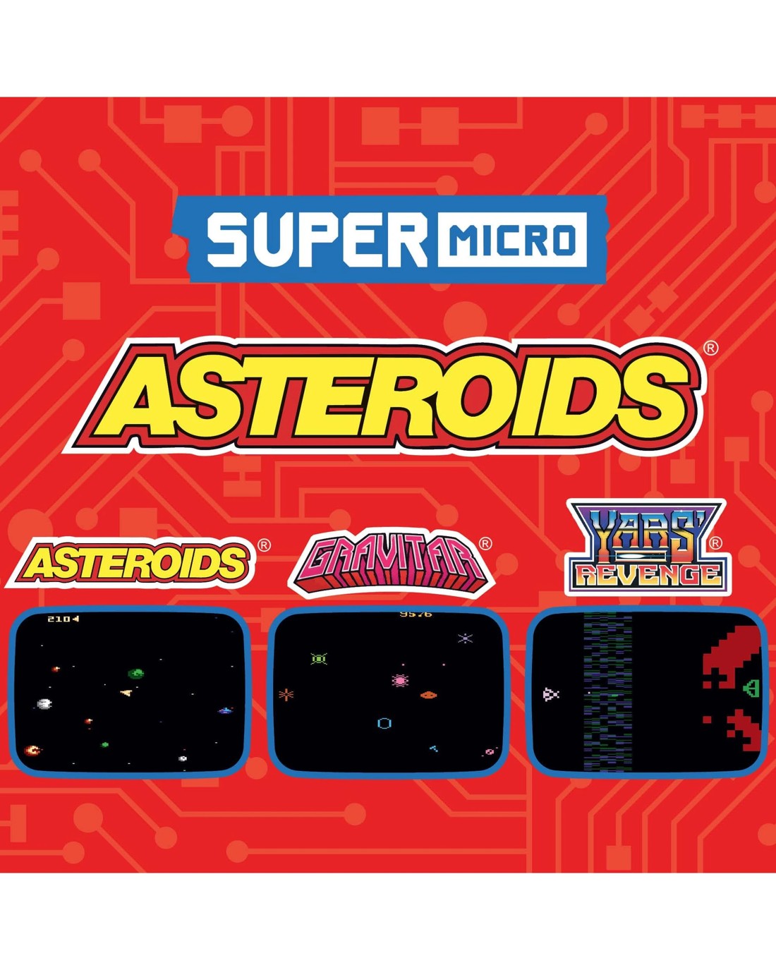 Retro Gaming just got Micro-sized with the Super Micro Asteroids Keychain Gamer from HyperMegaTech! Small enough to fit onyour keys and go anywhere but large enough to be playable. Features three great Atari games - Asteroids, Gravitar and Yars Revenge. The 2" RGB screen allows maximum playability, along with a volume control for just the right amount of sound makes this more than a novelty. Requires 3x AAA batteries (not included) Ages 12 +