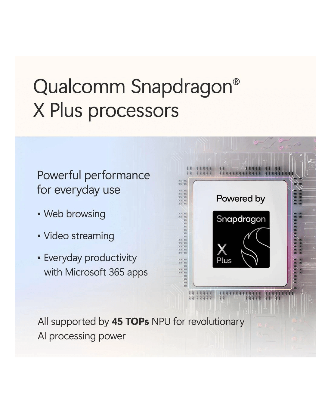 - Productivity and efficiency, redefined: Built with the latest Qualcomm Snapdragon X Plus (8 Core) processors, Surface Laptop delivers impressive performance and features a NPU with up to 45 TOPS designed to accelerate AI experiences¹.